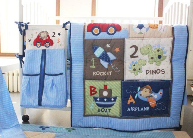 Семь -набор из вещей: стеганое одеяло, окружность кровати, укус кровати, юбка для кровати, одеяло, сумка с подгузником, окно -мантия