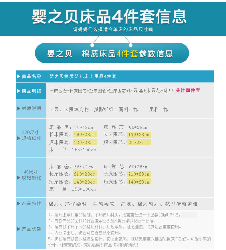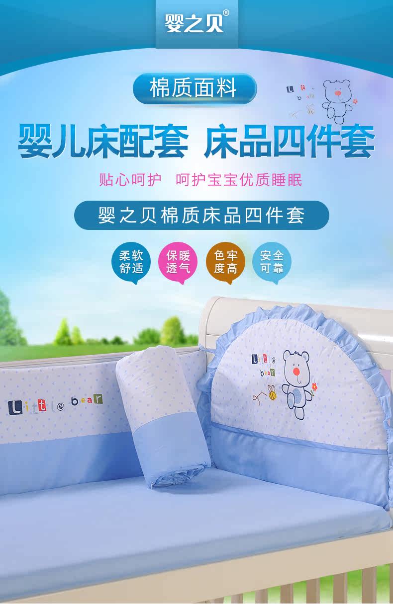 婴之贝 Покрывало, комплект для кроватки, съёмные детские бортики, 4 предмета