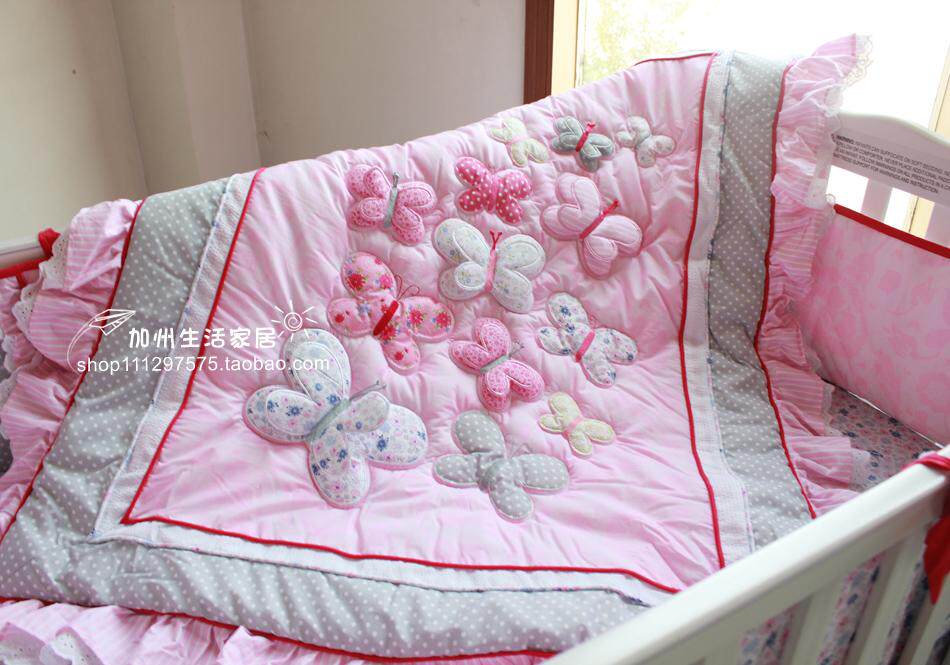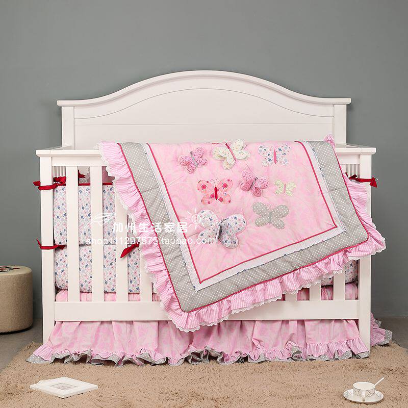 Это постельное белье игривое и милое, так что ребенок может лучше понять цвет под предварительным комфортом и безопасности.Трехмерные бабочки -это превосходное мастерство.Ткань стеганого одеяла -это хлопок и тканый хлопок.
