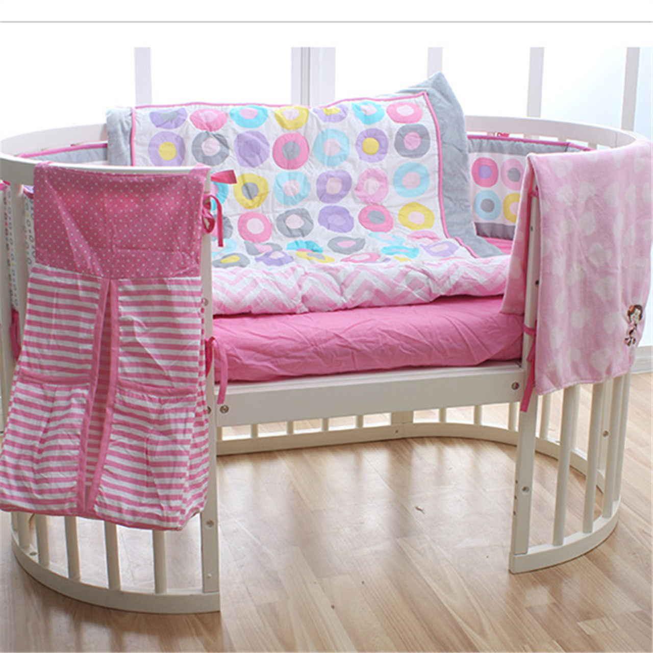 Одно стеганое одеяло, одна подушка, круговая лист -кровати -типа подходит для 68*68 круглого мини -кровати, подходит для скорла для средней кровати эллипса.