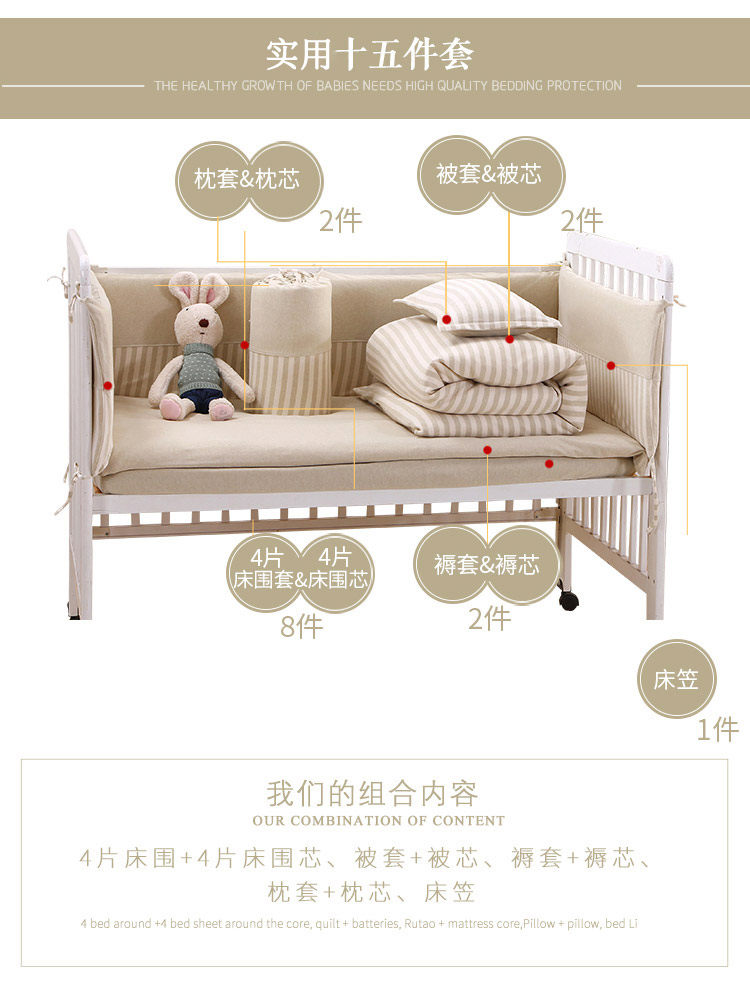 Кроватка, хлопковое покрывало, детские бортики для новорожденных для кровати для детского сада, съёмное одеяло, постельные принадлежности, делается под заказ
