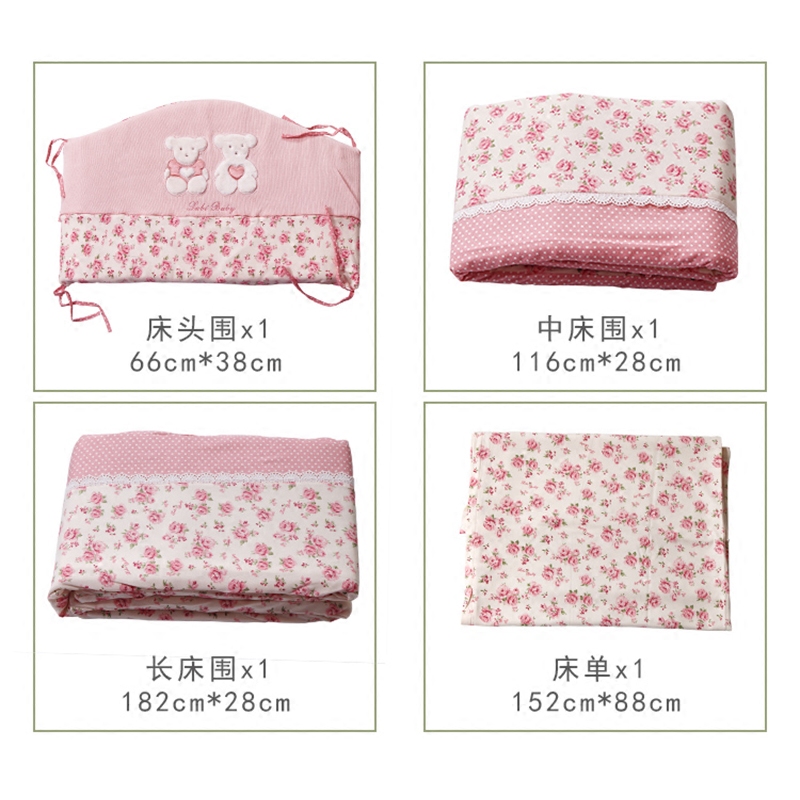 Детское покрывало для кроватки, хлопковые бортики для новорожденных, хлопковый дышащий комплект, 4 предмета