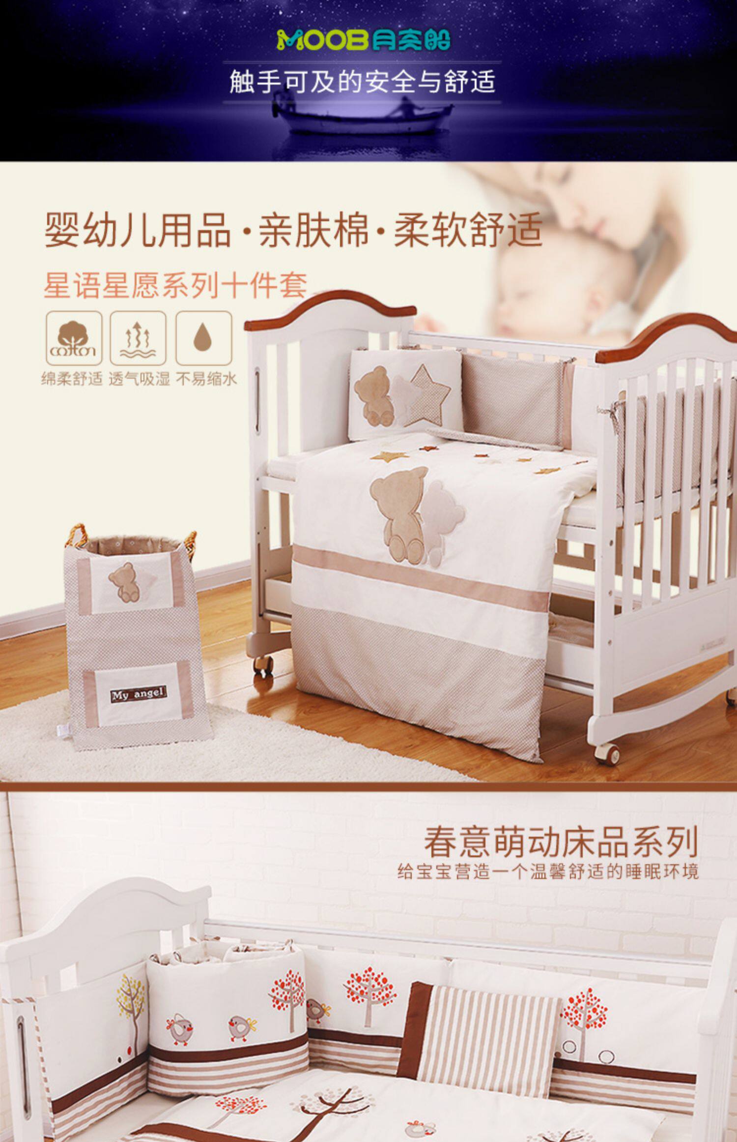 月亮船 Хлопковое покрывало, съёмные бортики, детский комплект
