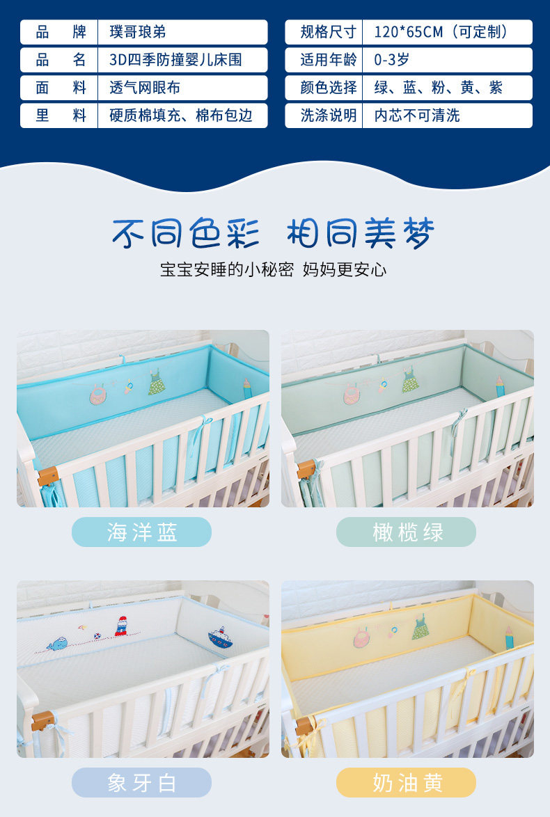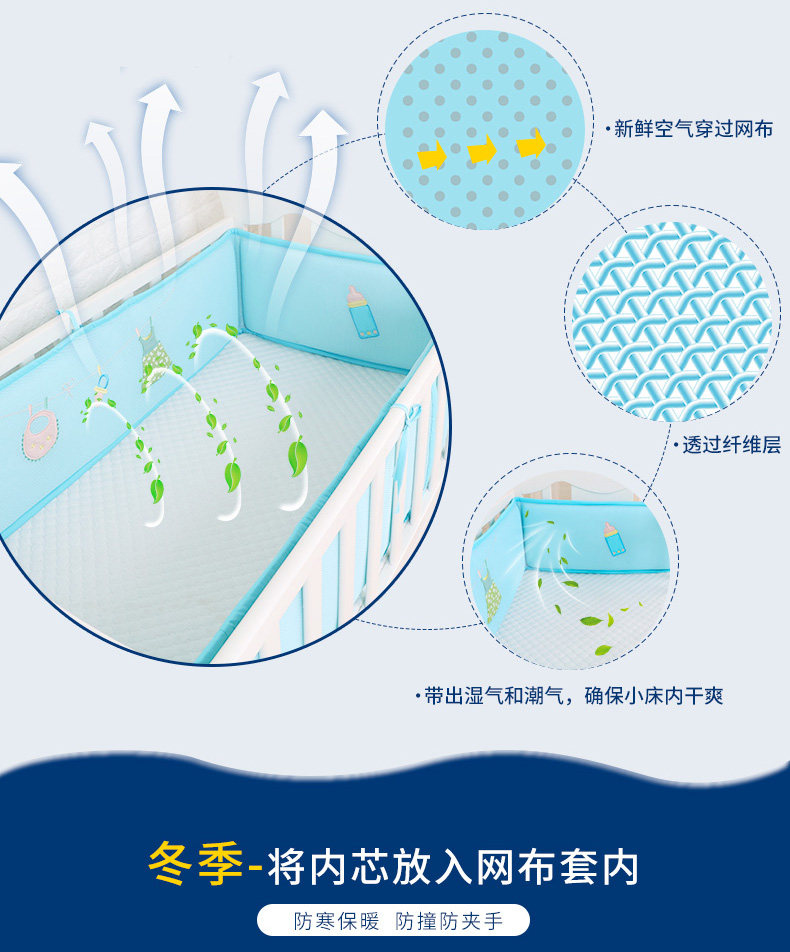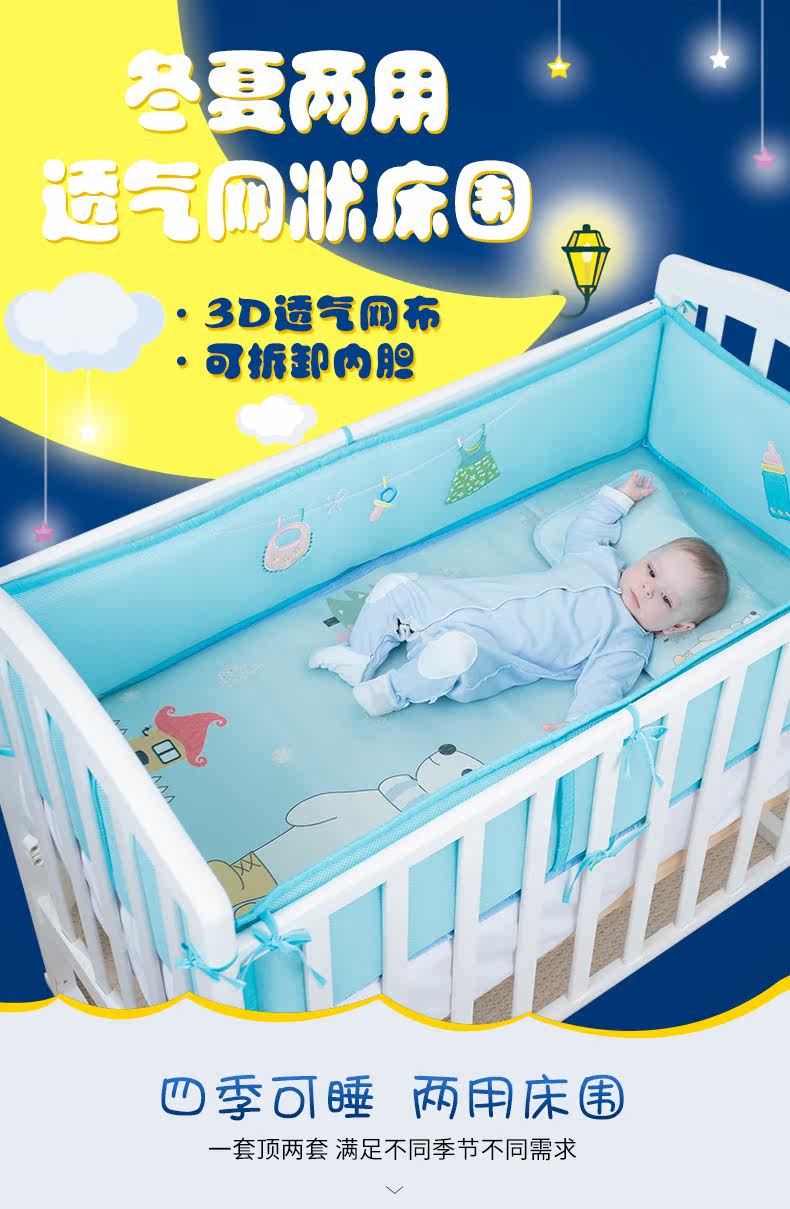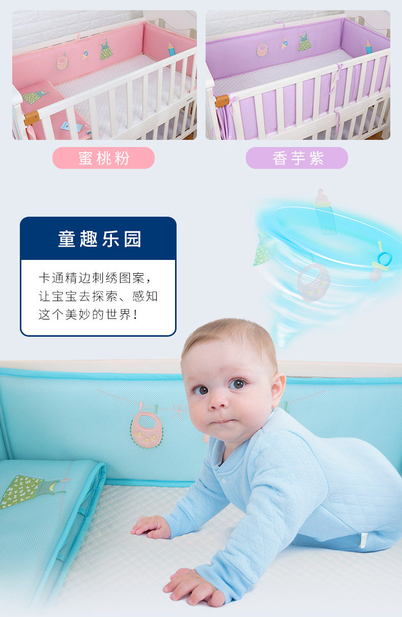 Кроватка, дышащие бортики, защитное съёмное покрывало, защита от столкновений