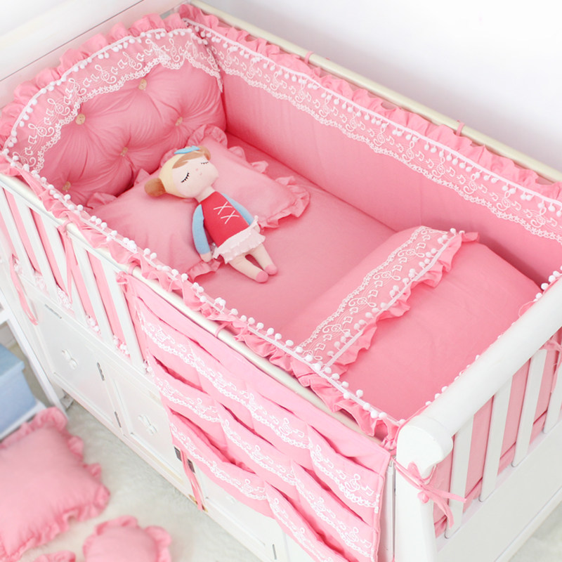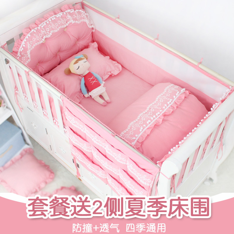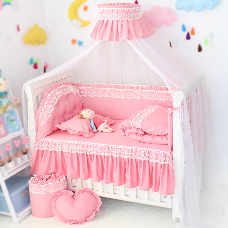 Кроватка, бортики, хлопковое универсальное детское летнее покрывало, кружевное платье