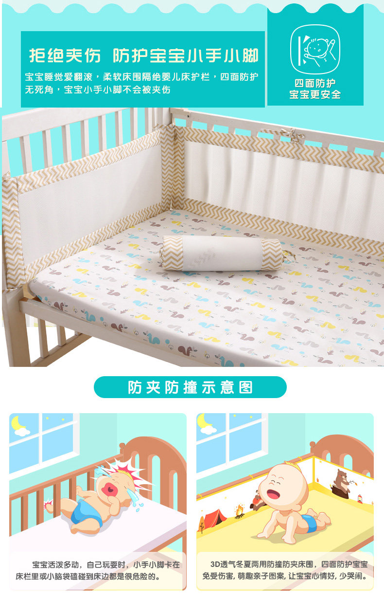 Хлопковая флуоресцентная детская кроватка, ограждение, дышащие бортики, 3D