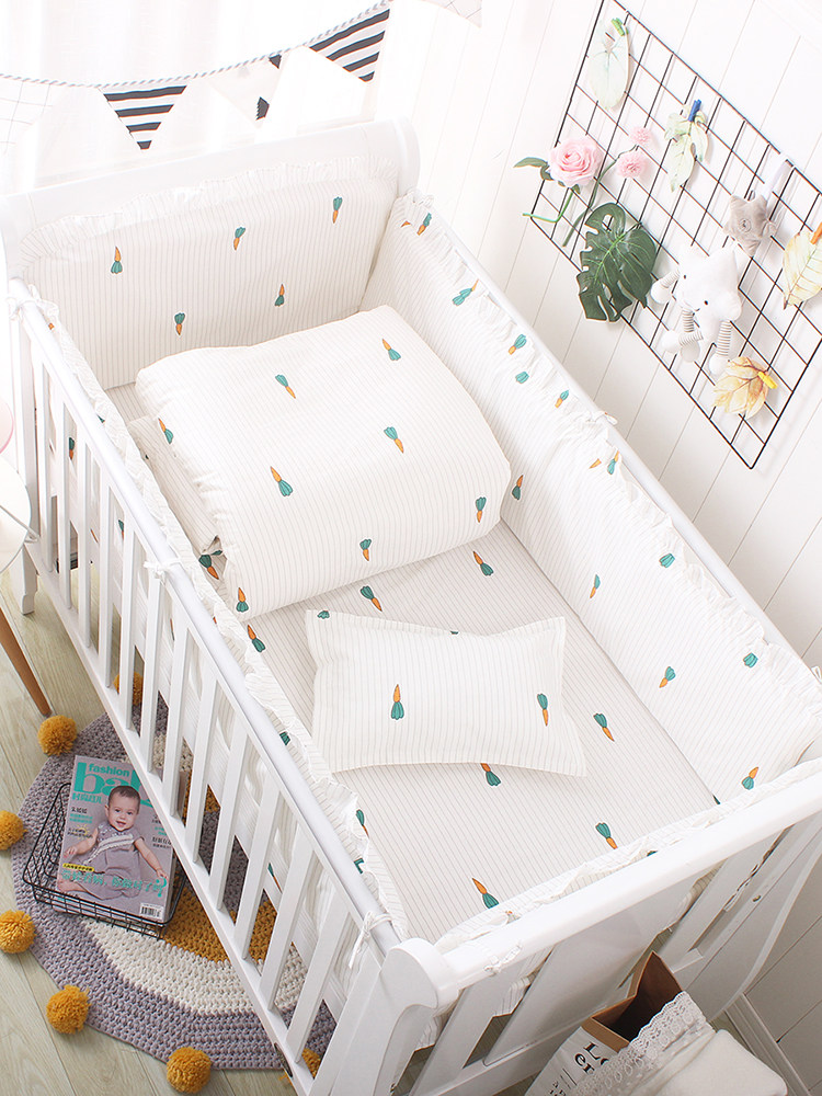 Хлопковый зимний комплект для кровати для новорожденных, хлопковое покрывало, 4 предмета, защита от столкновений