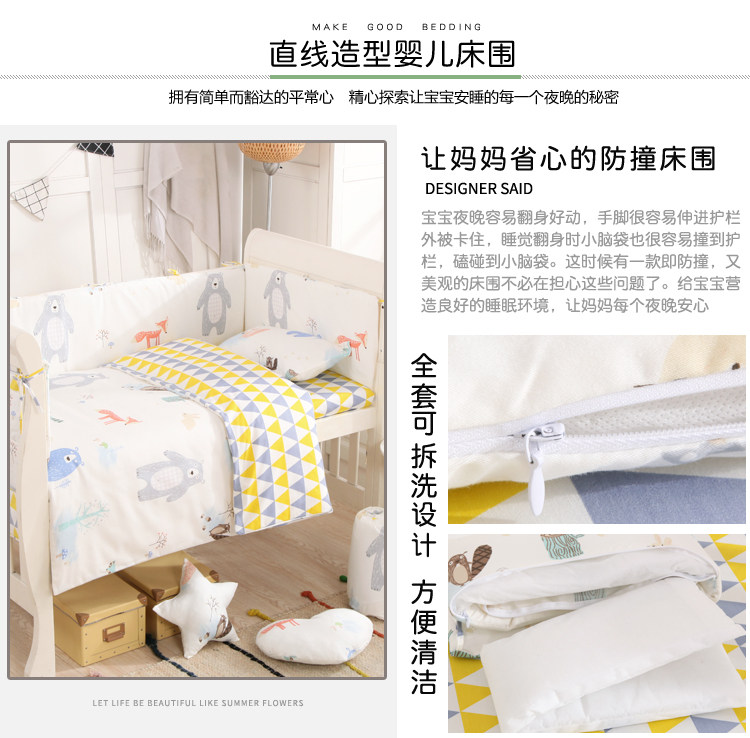 Хлопковые бортики, детское покрывало, дышащий съёмный комплект для кроватки, защита от столкновений