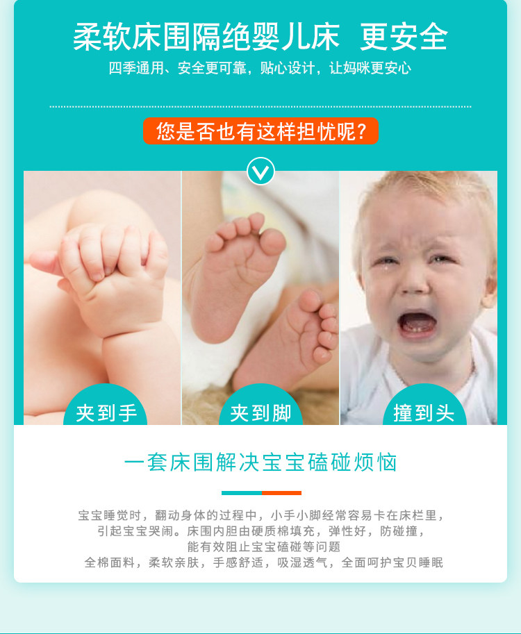 Кроватка, детские хлопковые бортики, хлопковая съёмная детская лента для приставной кровати, постельные принадлежности, защита от столкновений