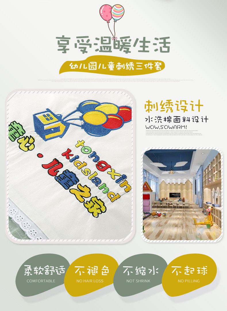 Детское одеяло для детского сада, детский хлопковый комплект, 3 предмета, постельные принадлежности, с вышивкой