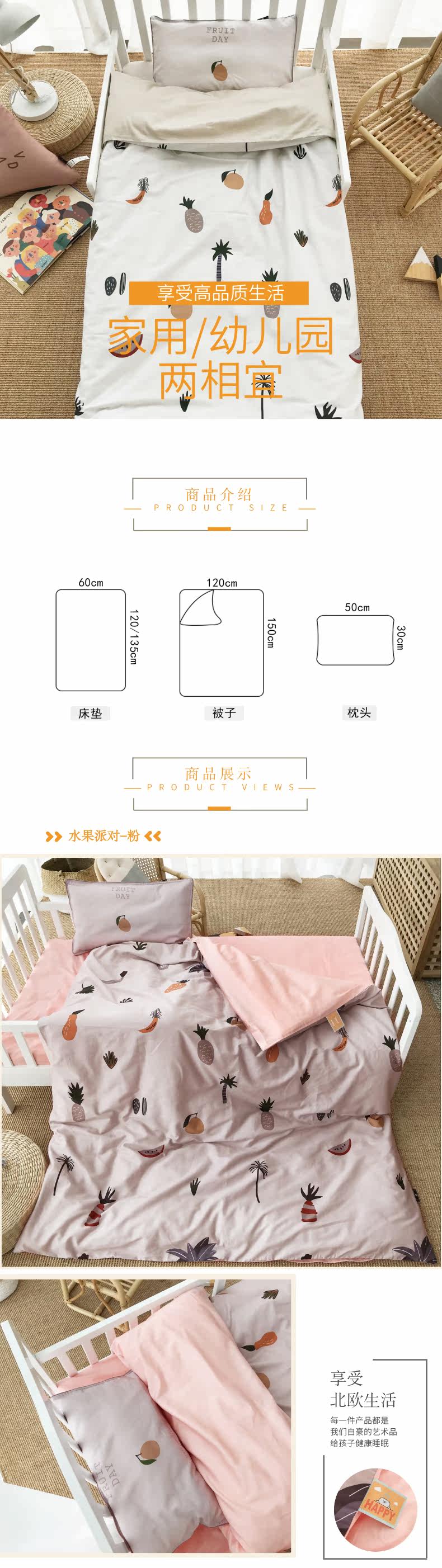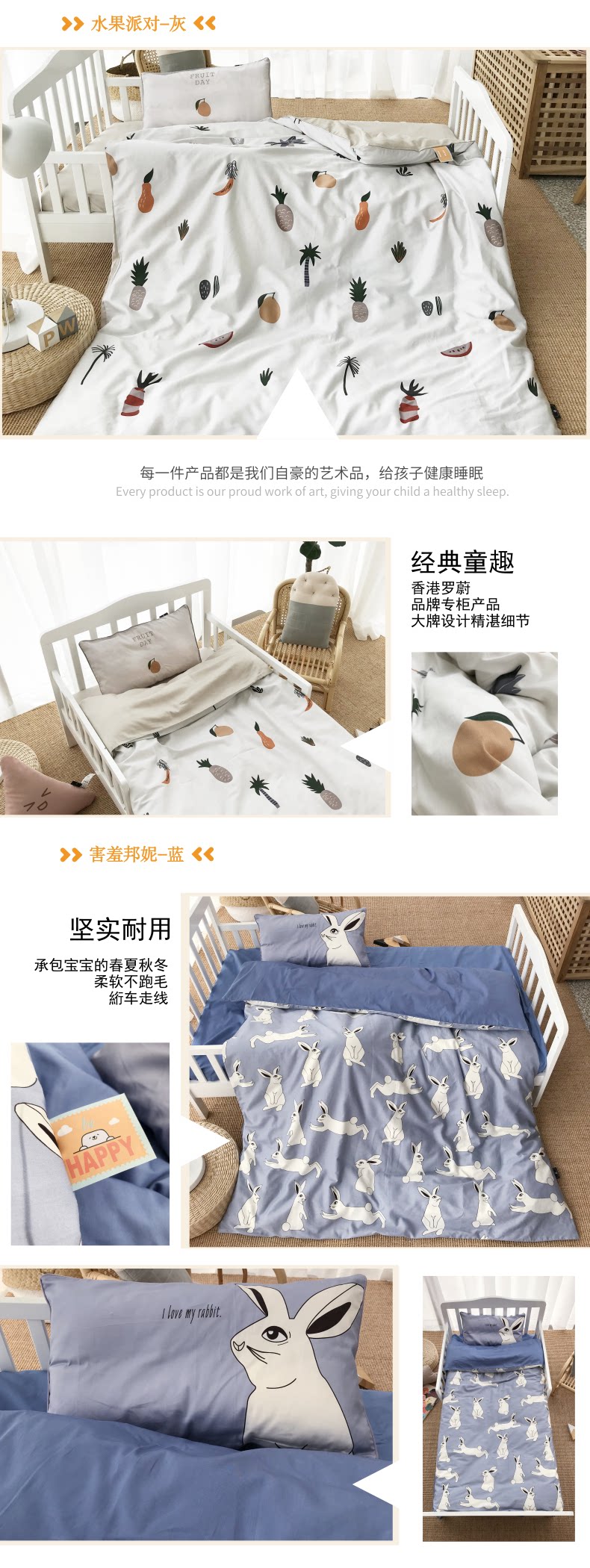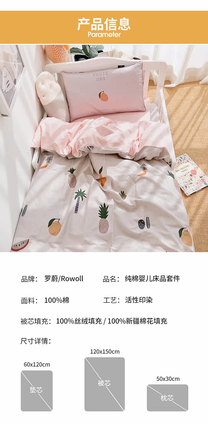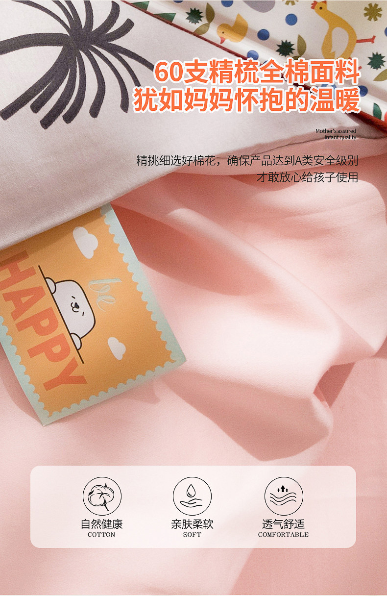 Rowoll/罗蔚 Хлопковый мультяшный элитный детский комплект для раннего возраста, 60 шт, 3 предмета, постельные принадлежности