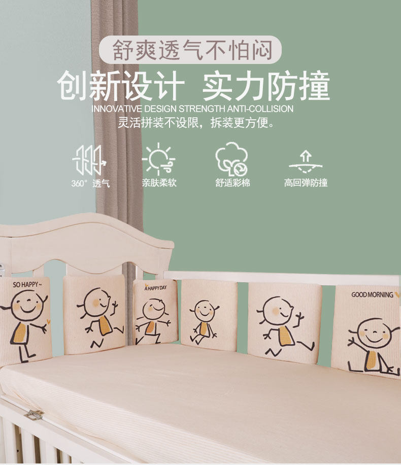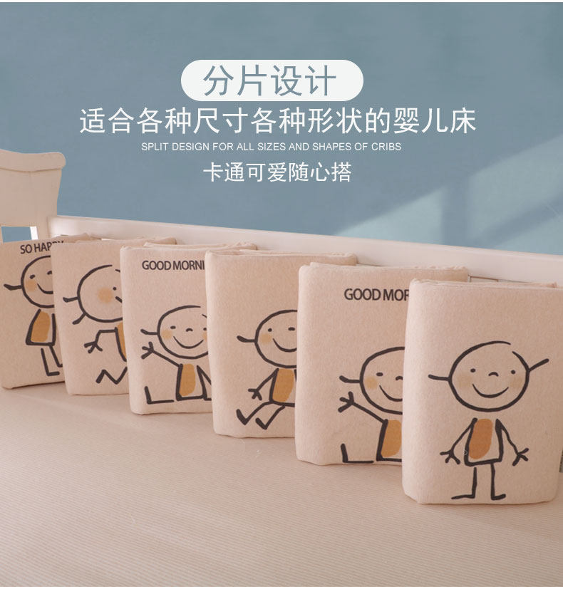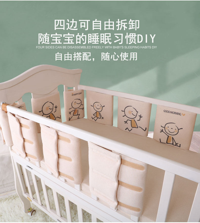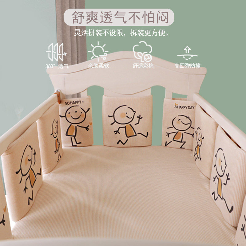 Хлопковая летняя дышащая кроватка, мультяшные универсальные детские бортики, увеличенная толщина, защита от столкновений