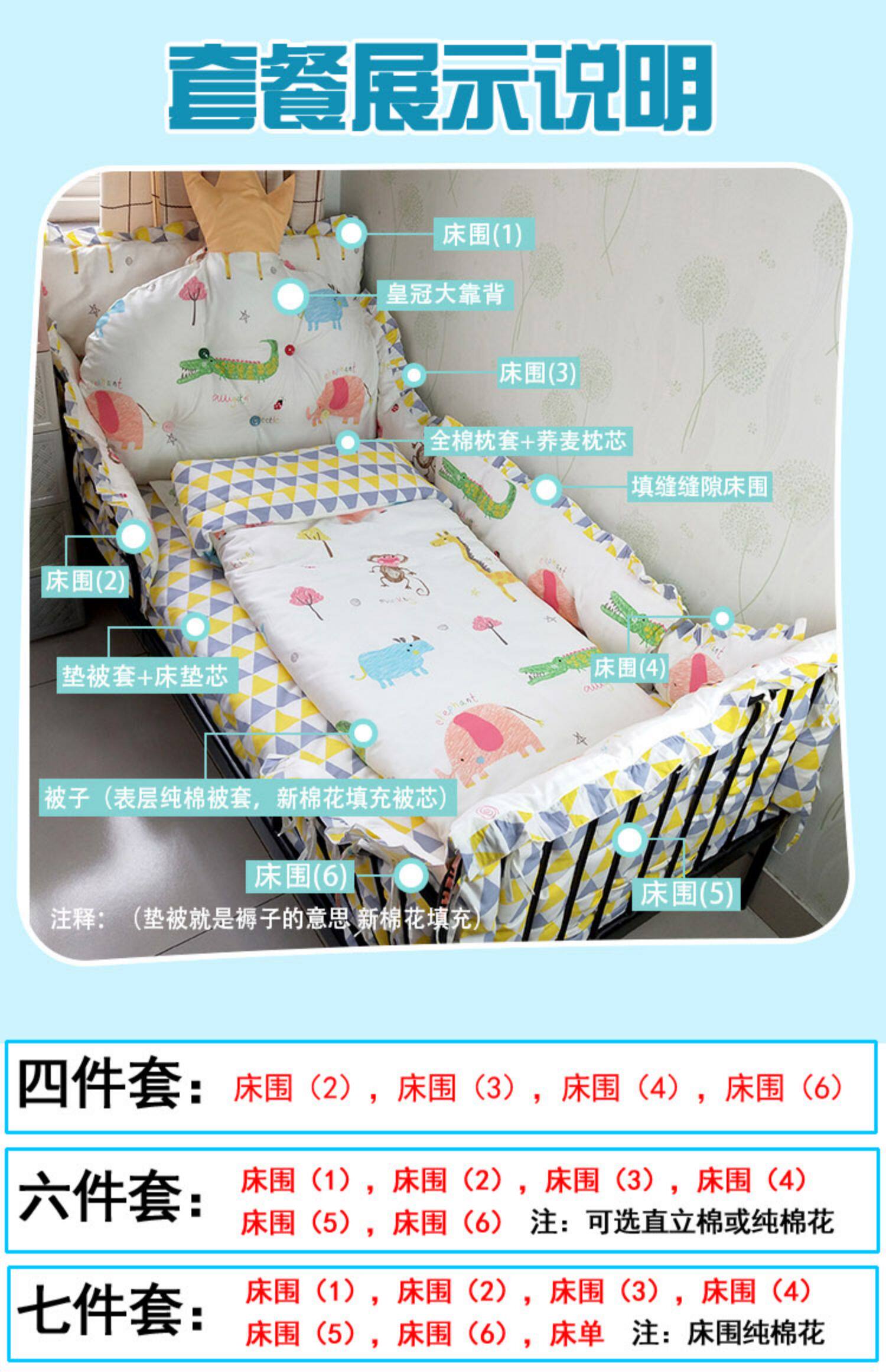Хлопковые бортики, детская кроватка, покрывало, съёмное одеяло