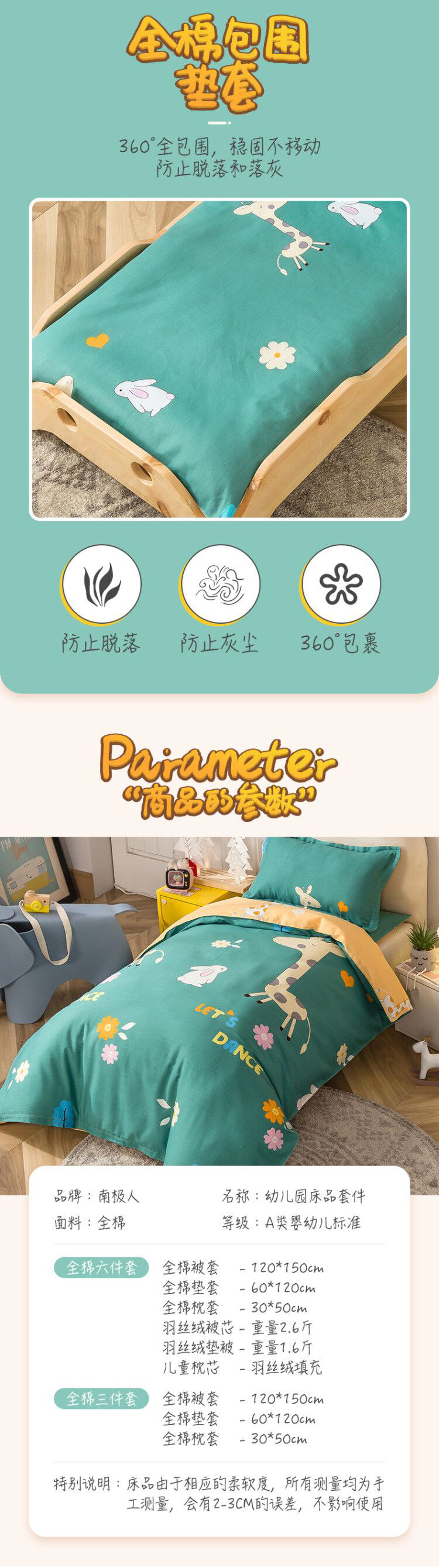 南极人 Хлопковое одеяло для детского сада, детский комплект, покрывало для сна, 3 предмета, постельные принадлежности