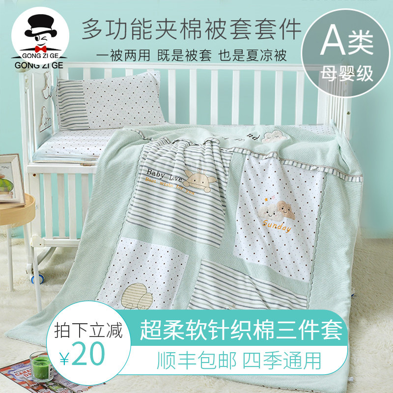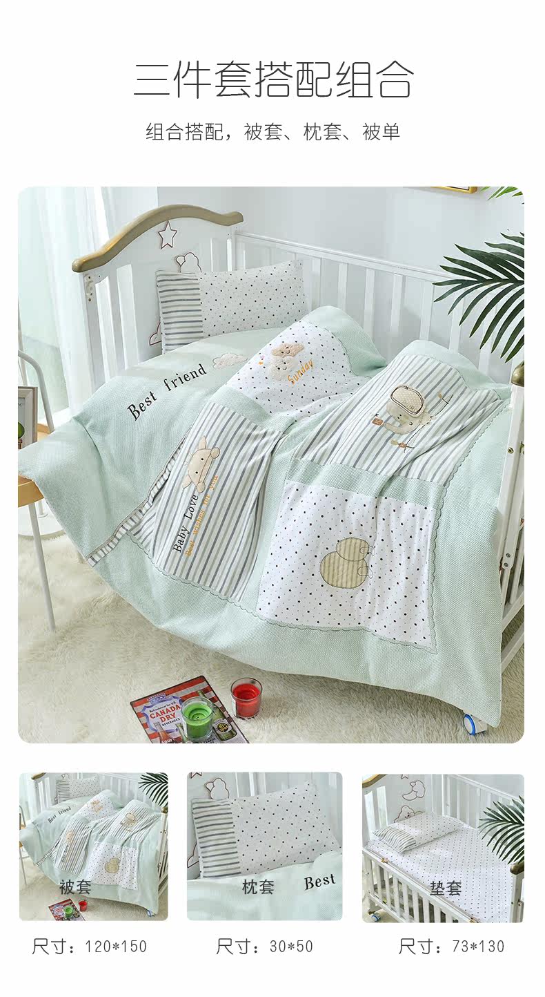 Трикотажный детский хлопковый комплект для детского сада, пододеяльник, покрывало, 3 предмета, постельные принадлежности