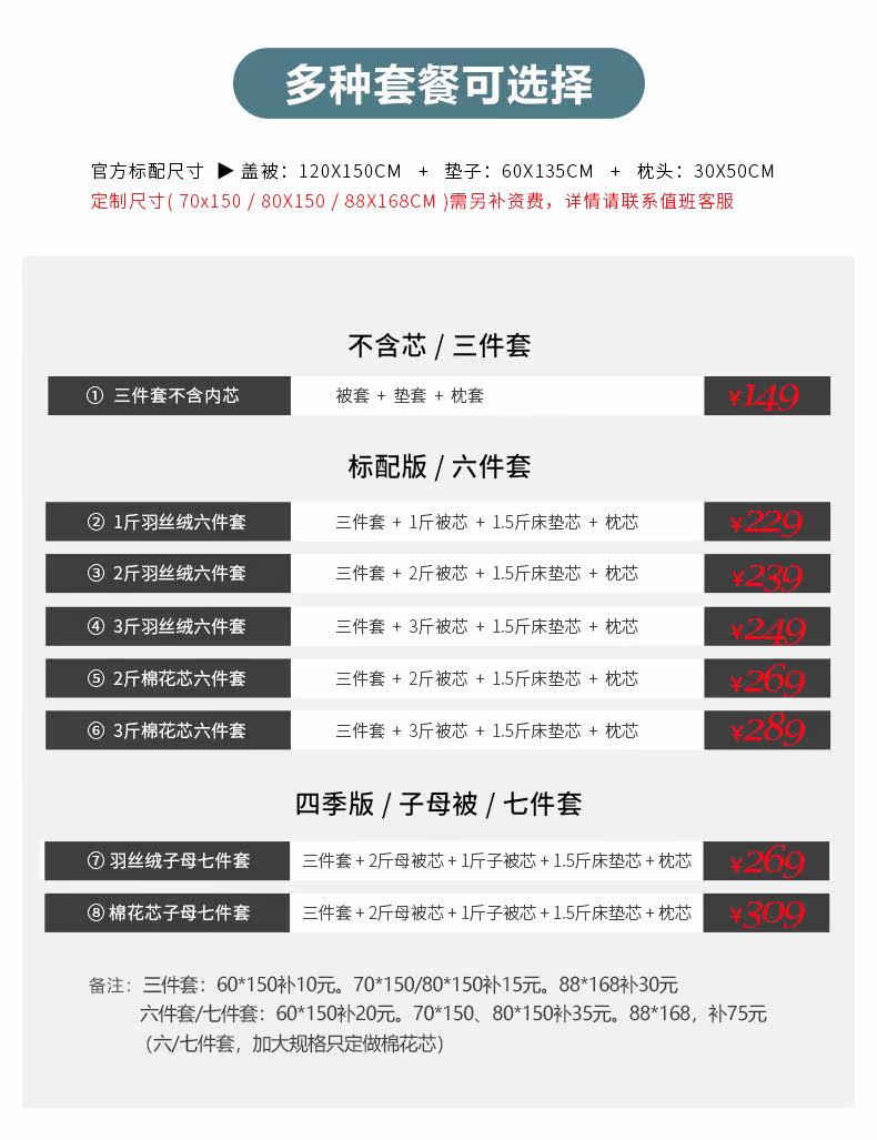 - 7 -Piece Sets of Yuye Velvers [Three -Piece Set+Core (2 Catties+1 Catties)+Core+Core Core]]