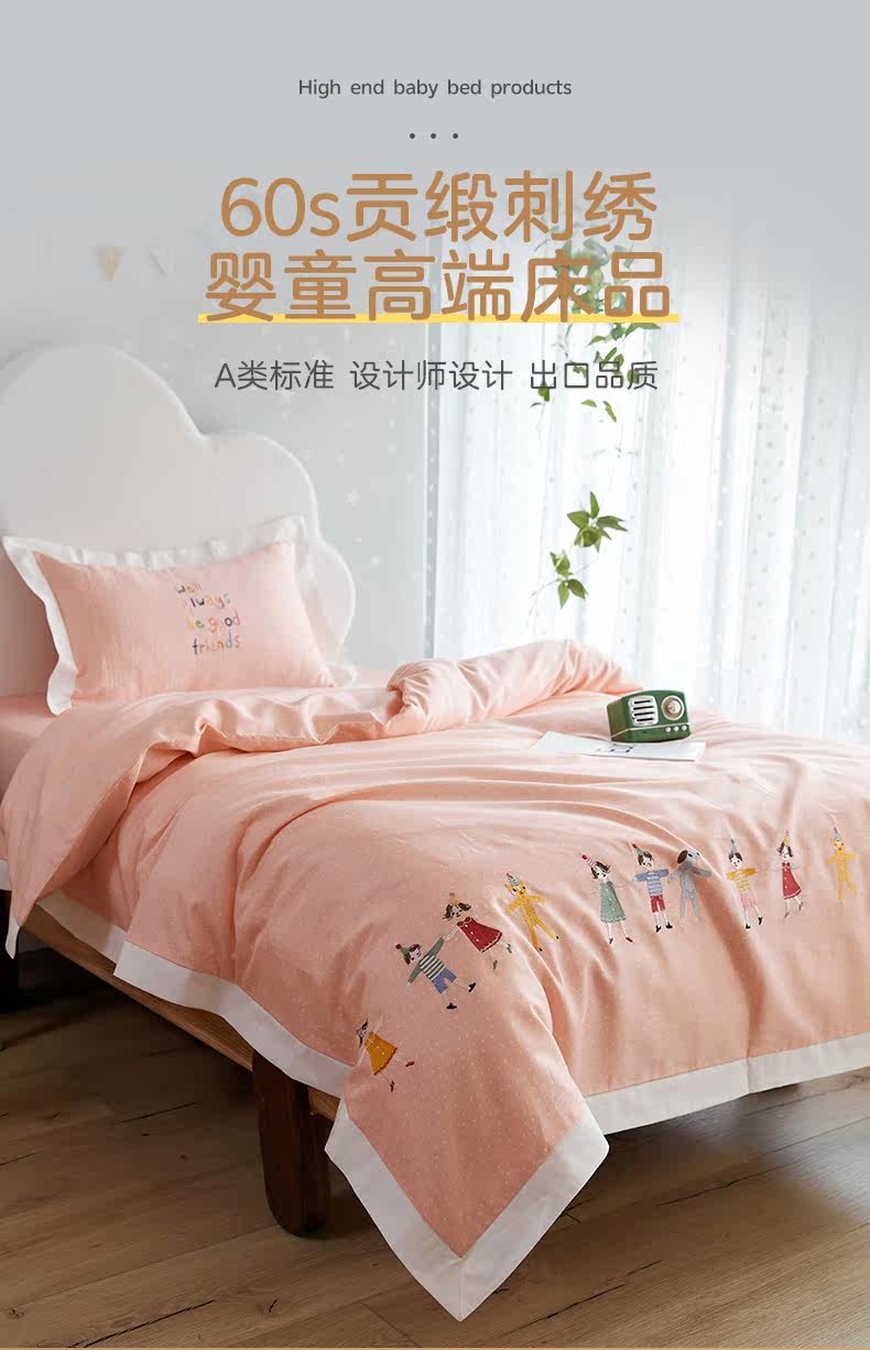 Одеяло для детского сада, хлопковый комплект, детский пододеяльник для кроватки, с вышивкой, 3 предмета, постельные принадлежности