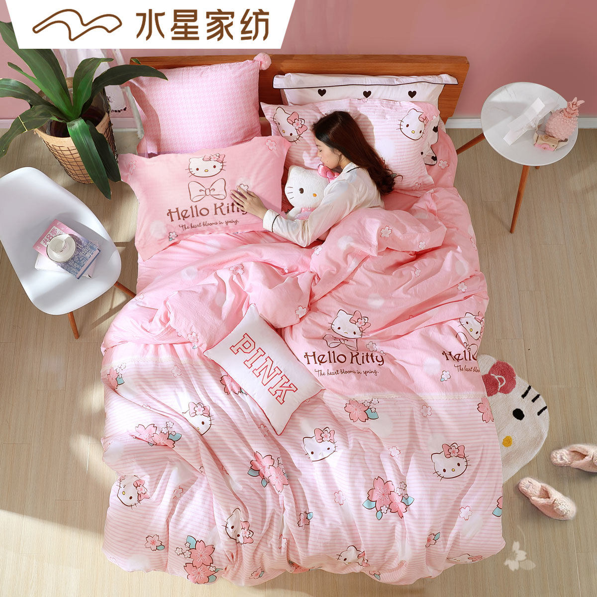 Hello Kitty, детский хлопковый комплект, пододеяльник, 4 предмета