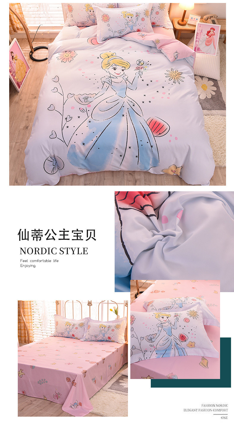 Дисней, хлопковое покрывало, мультяшный комплект, простыня, 4 предмета, 3 предмета