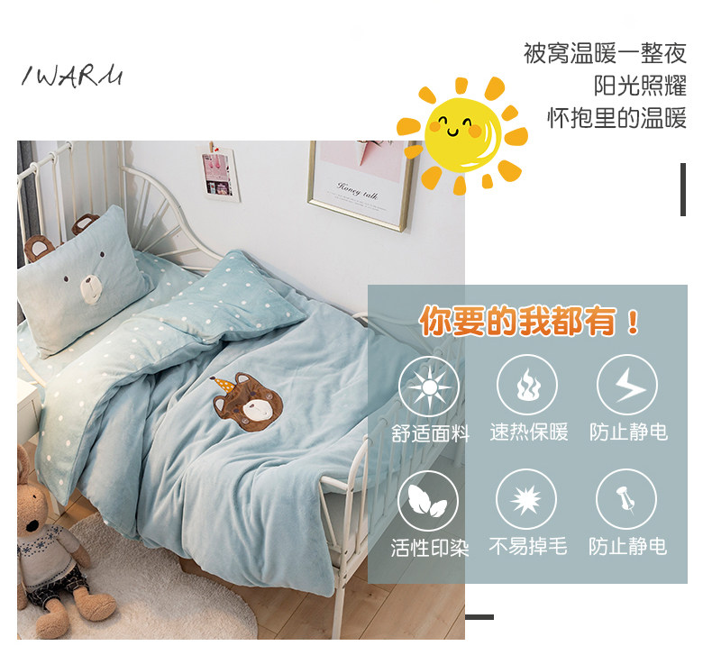 Одеяло для детского сада, коралловый детский комплект, утепленный пододеяльник для сна, 3 предмета, постельные принадлежности