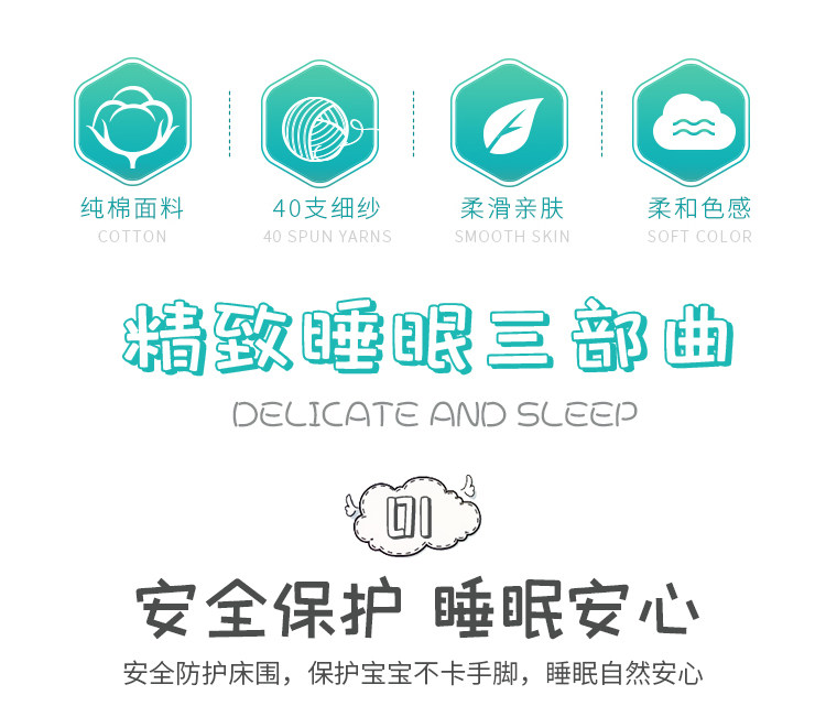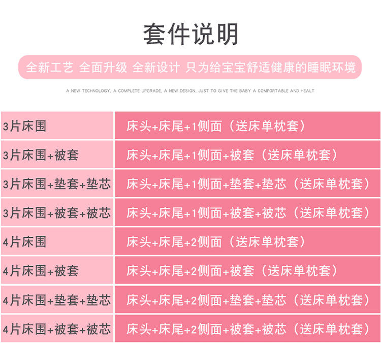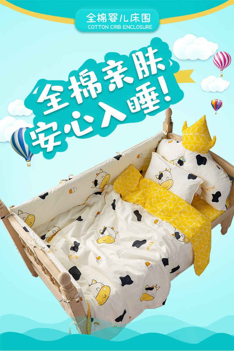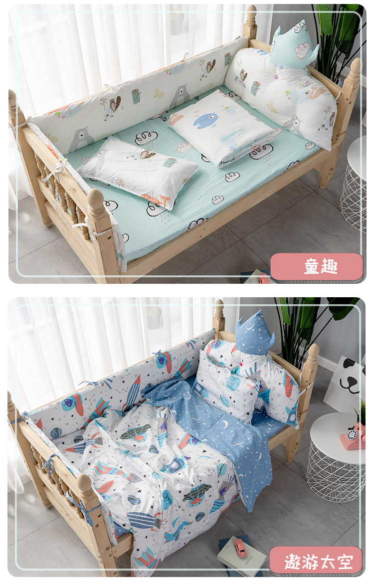 Бортики, лента, хлопковая защитная сумка, детское покрывало, съёмный комплект для приставной кровати, защита от столкновений