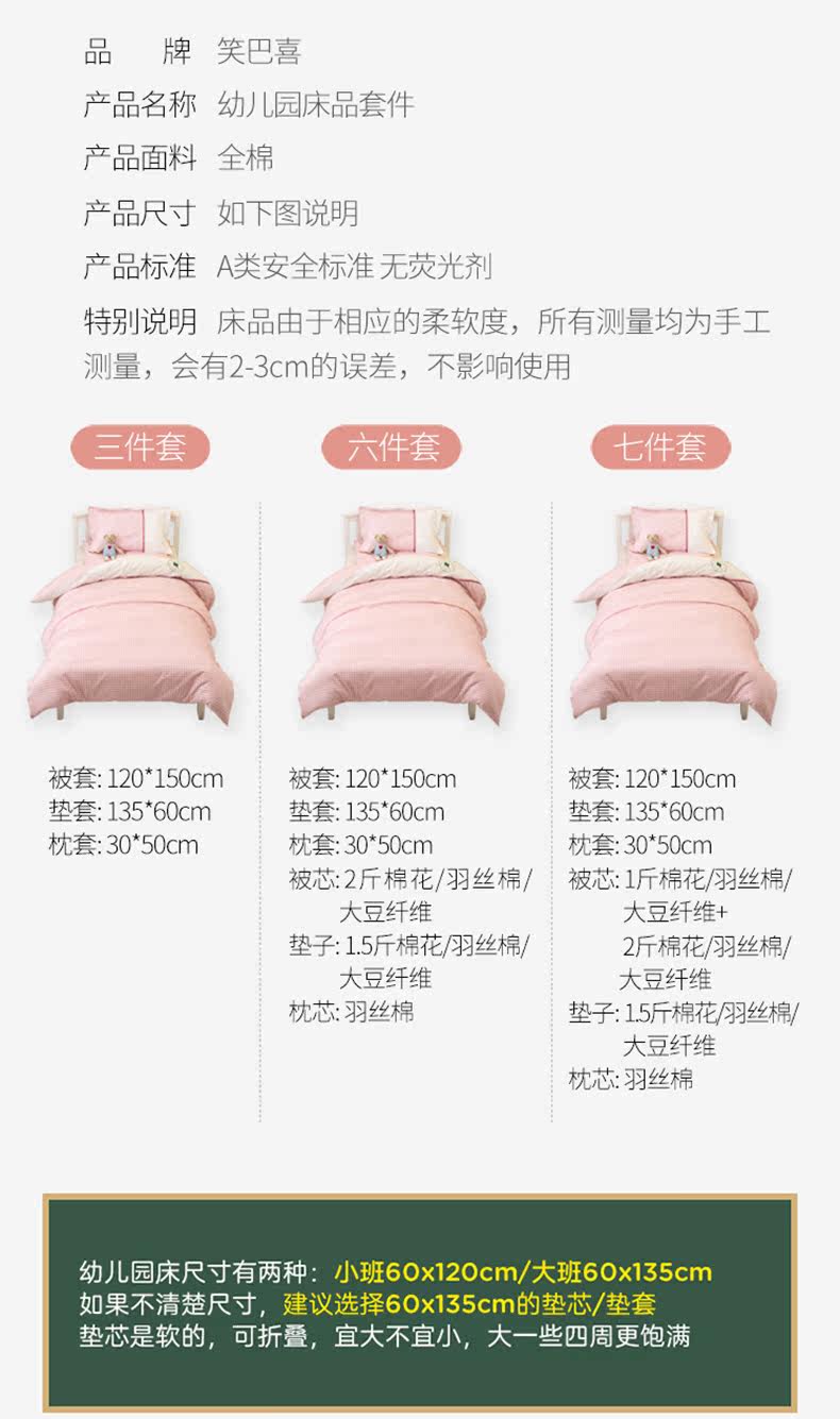 笑巴喜 Хлопковое одеяло для детского сада, детский комплект, матрас для новорожденных для младенца, 3 предмета, постельные принадлежности