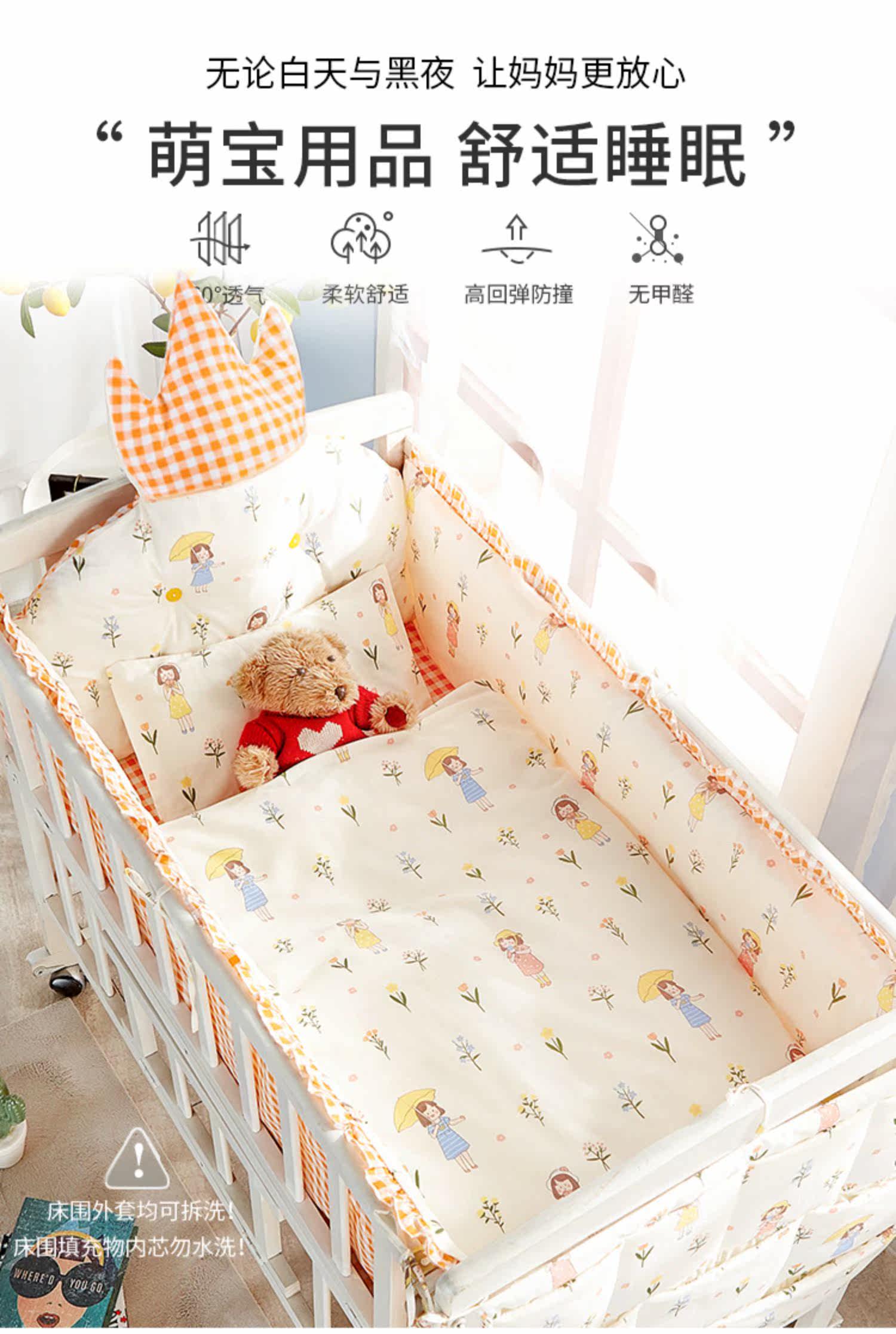 Кроватка, хлопковые бортики, детская лента, съёмное хлопковое покрывало, постельные принадлежности, защита от столкновений, делается под заказ