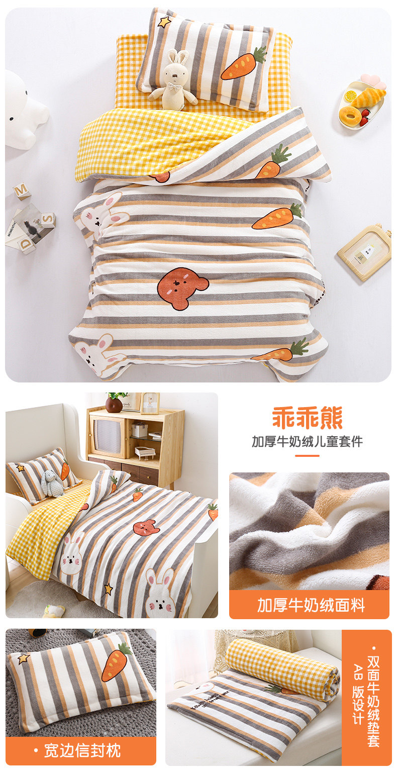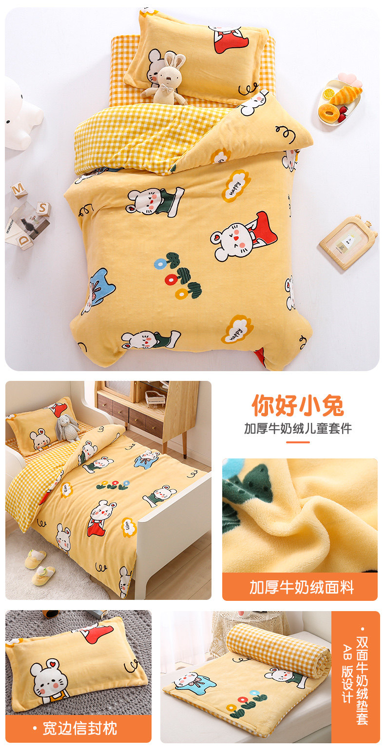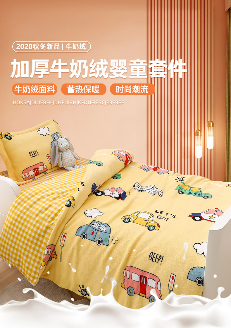 Детское одеяло для детского сада, зимний комплект, коралловый милый матрас для сна, 3 предмета, увеличенная толщина