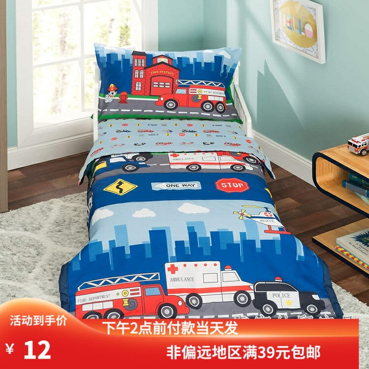 (Трансграничная торговля), полицейская машина, покрывало для младенца для детского сада, комплект, одеяло, простыня, пожарная машина, 4 предмета