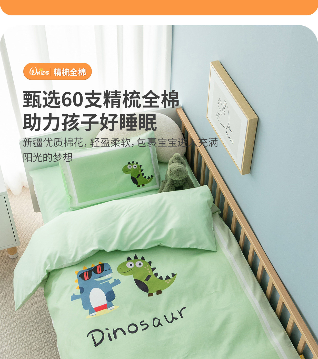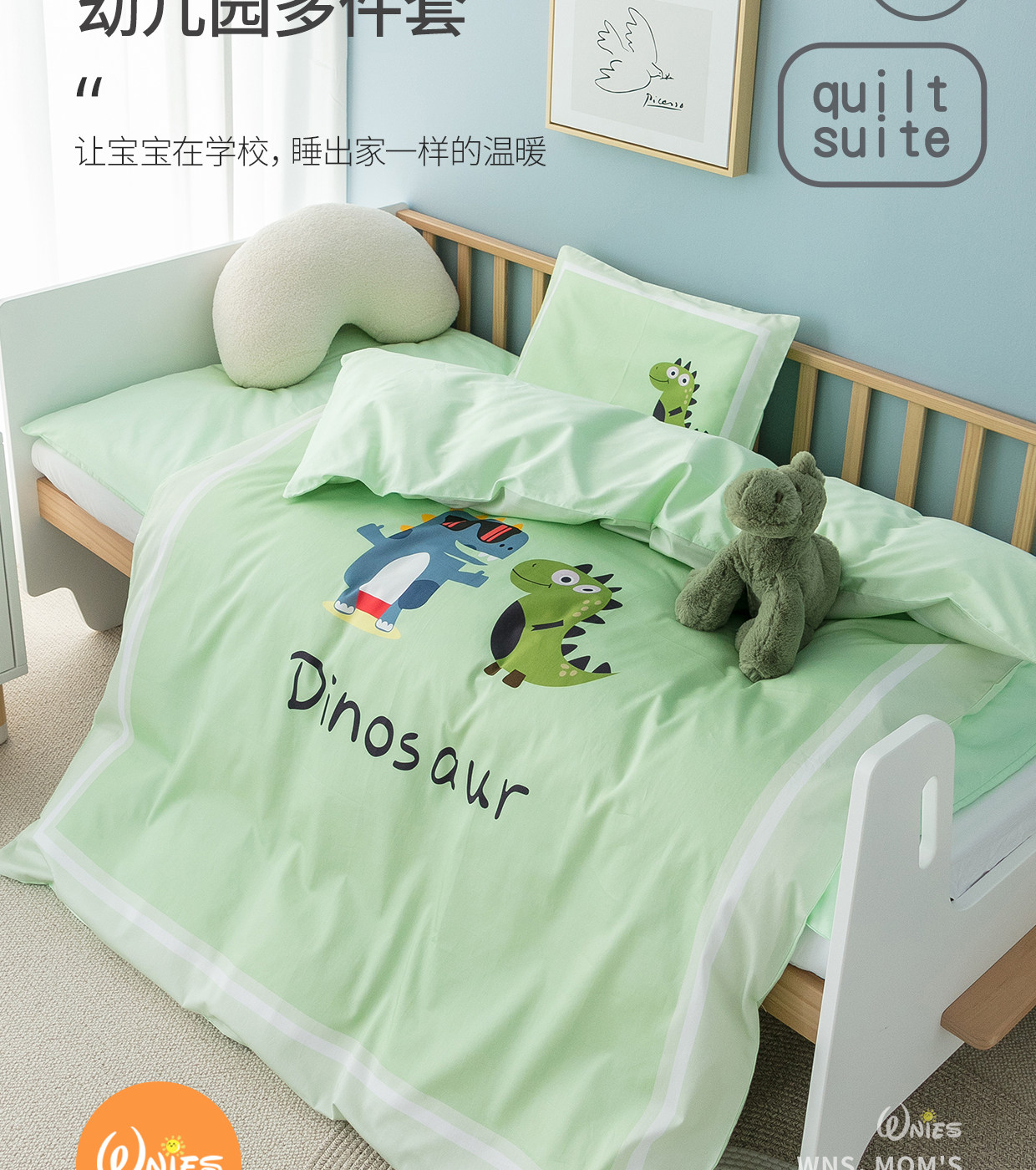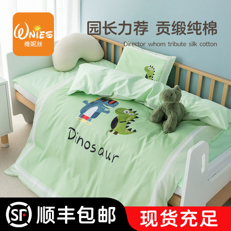 Одеяло для детского сада, зеленый хлопковый комплект, 3 предмета, постельные принадлежности