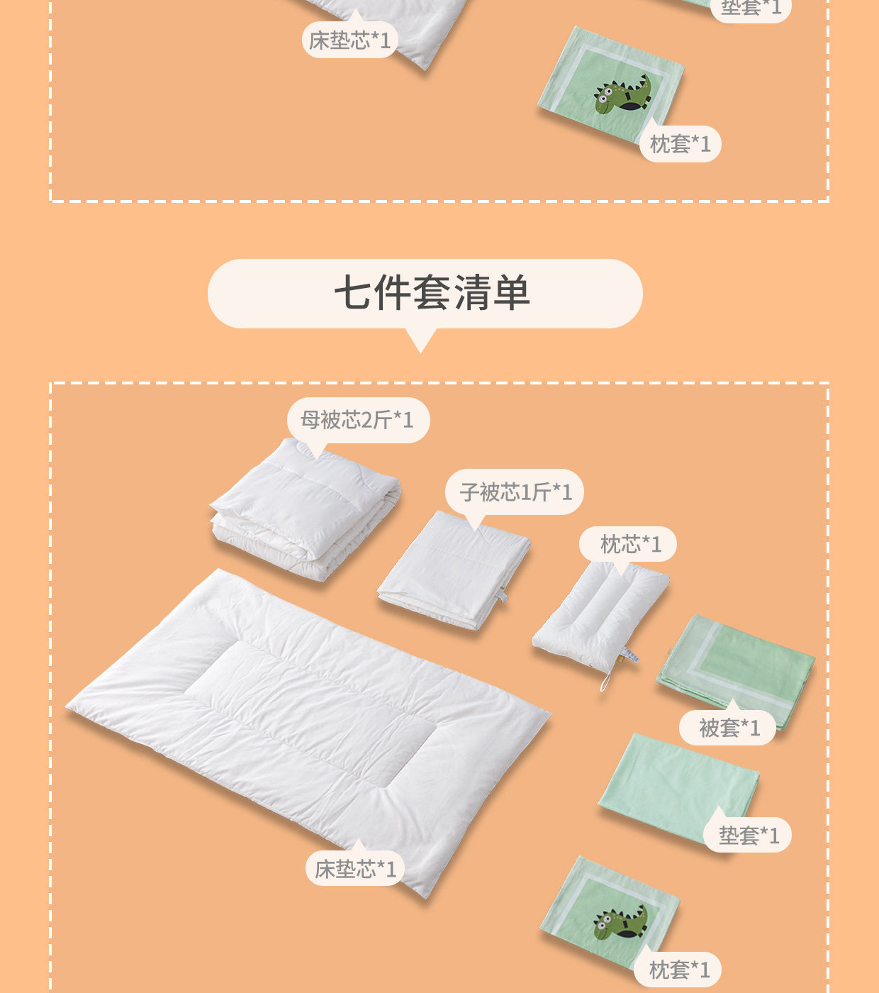 - 7 -peece Cotton Mother -н -Law [Three -Piece Set+детское стеганое одеяло (1 Catties+2 Catties)+Pad Core+Core Pillow Core]