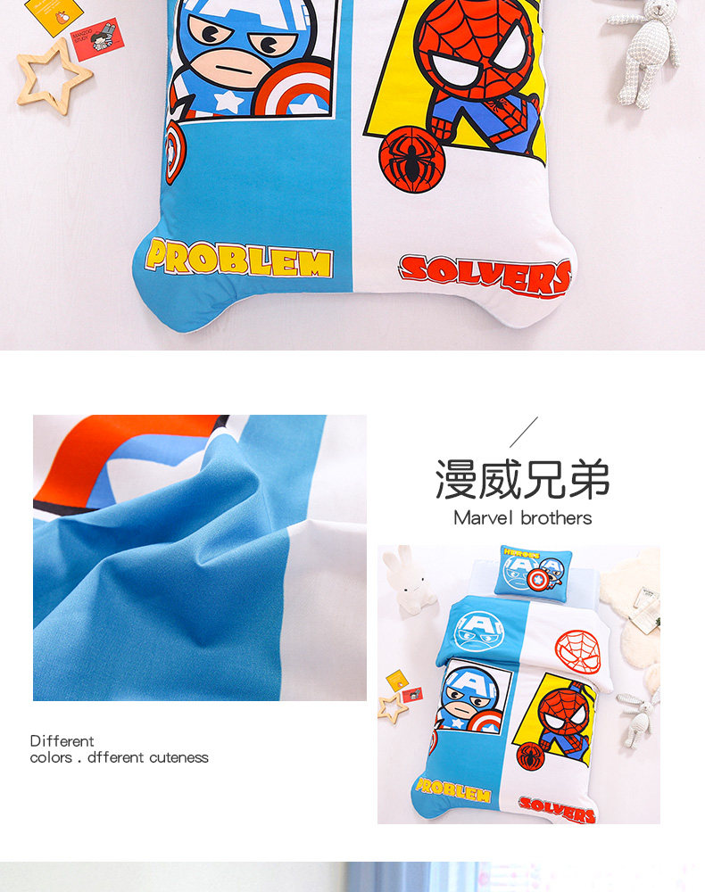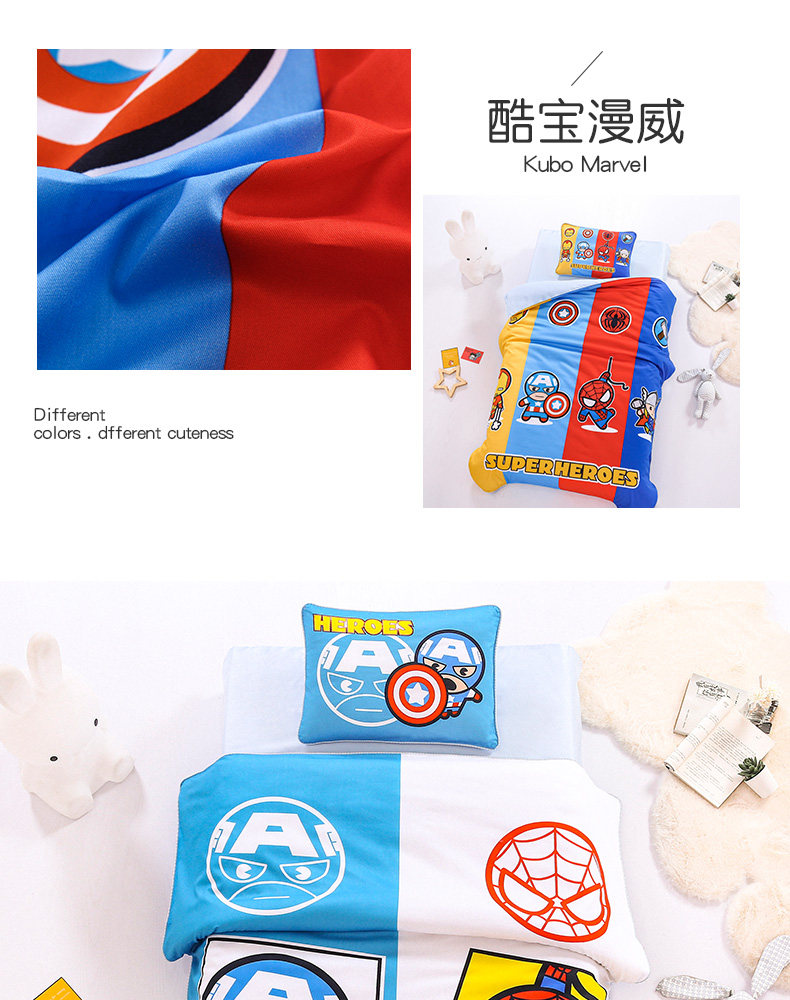 Одеяло для детского сада, хлопковый детский комплект, детская кровать для сна, Марвел, 3 предмета, постельные принадлежности