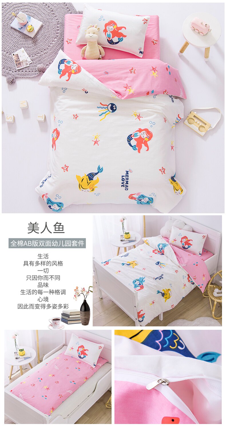 Хлопковое одеяло для детского сада, детский комплект для кроватки для сна, 3 предмета, постельные принадлежности