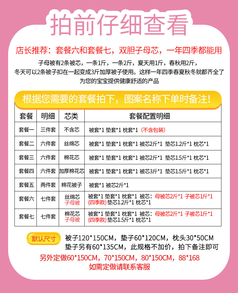 | Размер: | Установите один: набор из трех -цепочек (без сердечника) (стеганое одеяло 120*150, прокладки 60*135, рукав с подушкой 30*50), Пакет 2: 2 фунта шелкового хлопка с шестью -набором, Пакет 3: 2 фунта хлопкового ядра шесть наборов, Упаковка четыре: 3 фунта толстого хлопкового ядра шесть наборов, Пакет 5: 2 кот хлопкового одеяла+стеганое одеяло, Набор 6: Мать Silkno -это набор из 7 -частью., Пакет Семь: Матери хлопка установлены 7 штук |