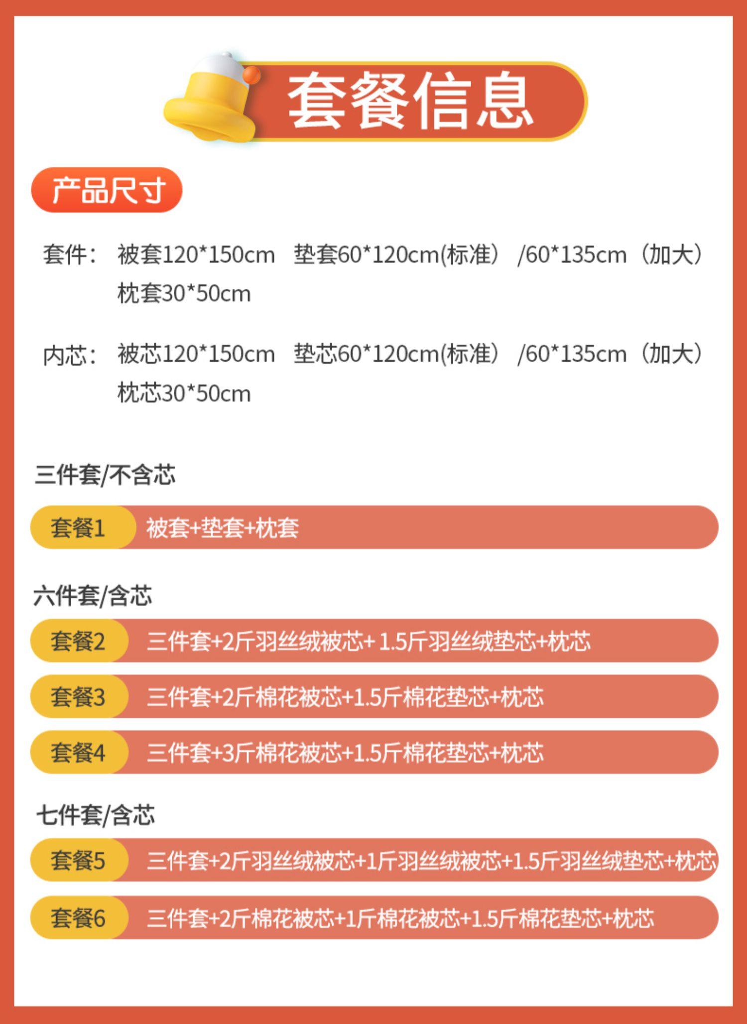 - Набор из шести предметов с хлопковой сердцевиной [набор из трех предметов с чехлом на подушку 60*135 см + наполнитель для одеяла 2 кг + наполнитель для подушки 1,5 кг + наполнитель для подушки]