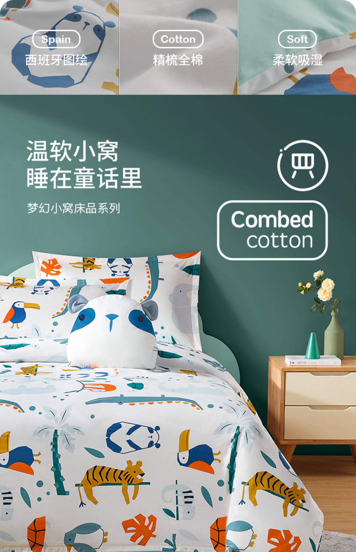 Хлопковая простыня, мультяшный пододеяльник, детское покрывало для школьников и студентов, комплект, 4 предмета