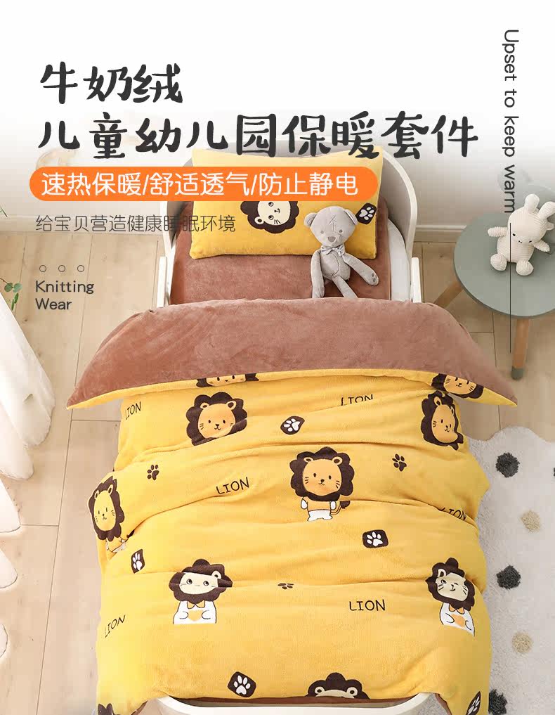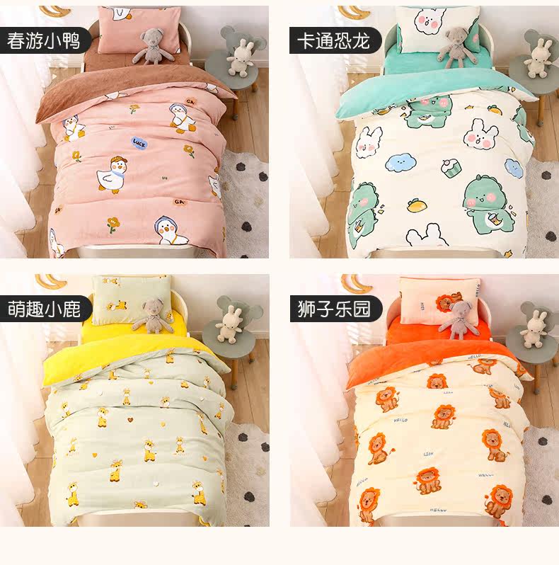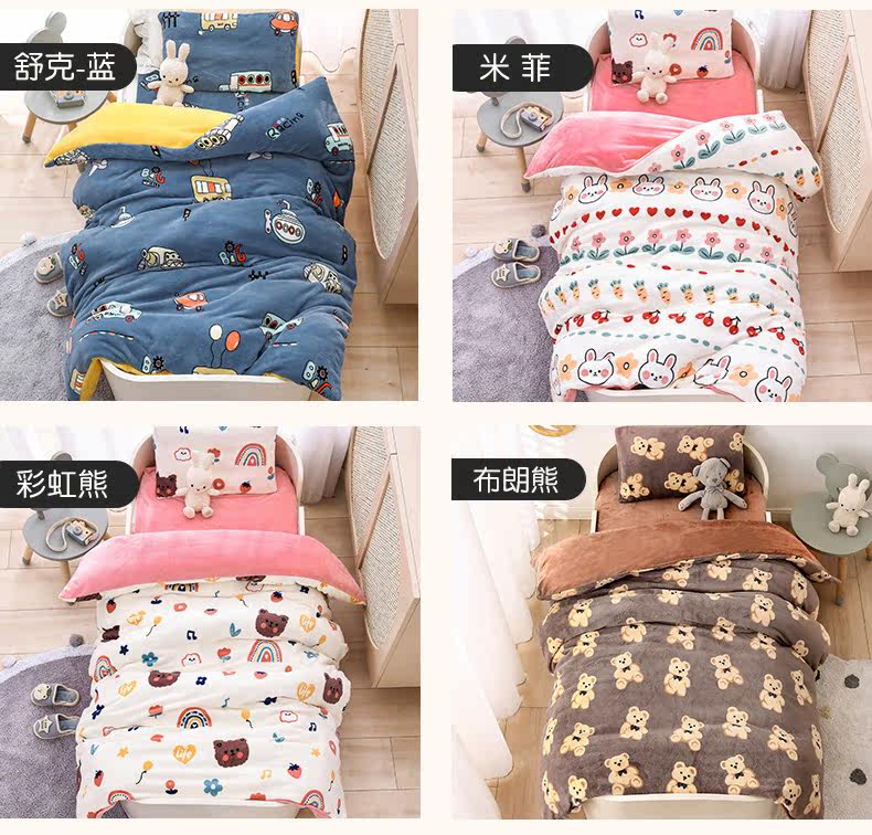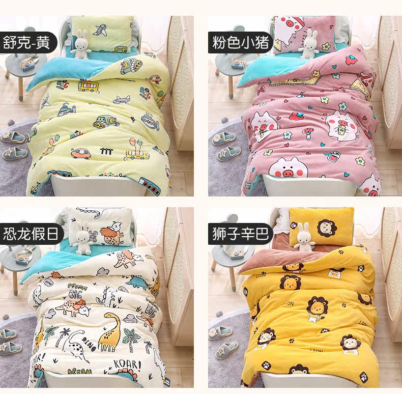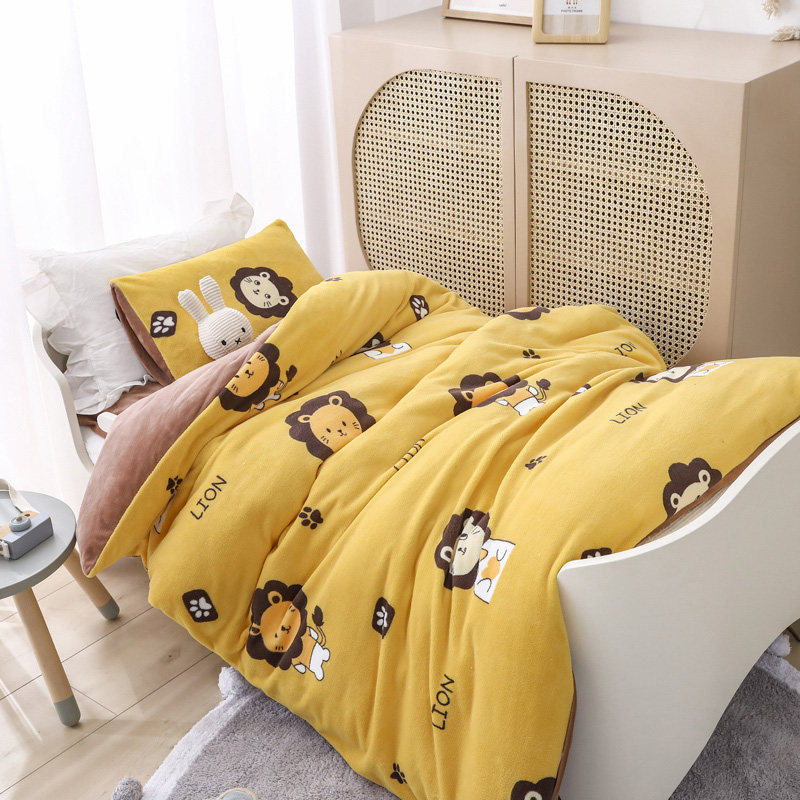 Двусторонное коралловое одеяло для детского сада, флисовый детский зимний комплект, 3 предмета, постельные принадлежности