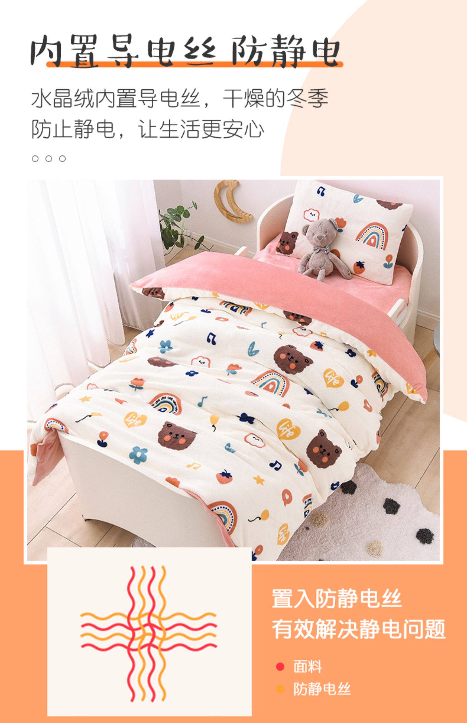 Одеяло для детского сада, комплект, детский коралловый демисезонный пододеяльник для сна, 3 предмета, постельные принадлежности, увеличенная толщина