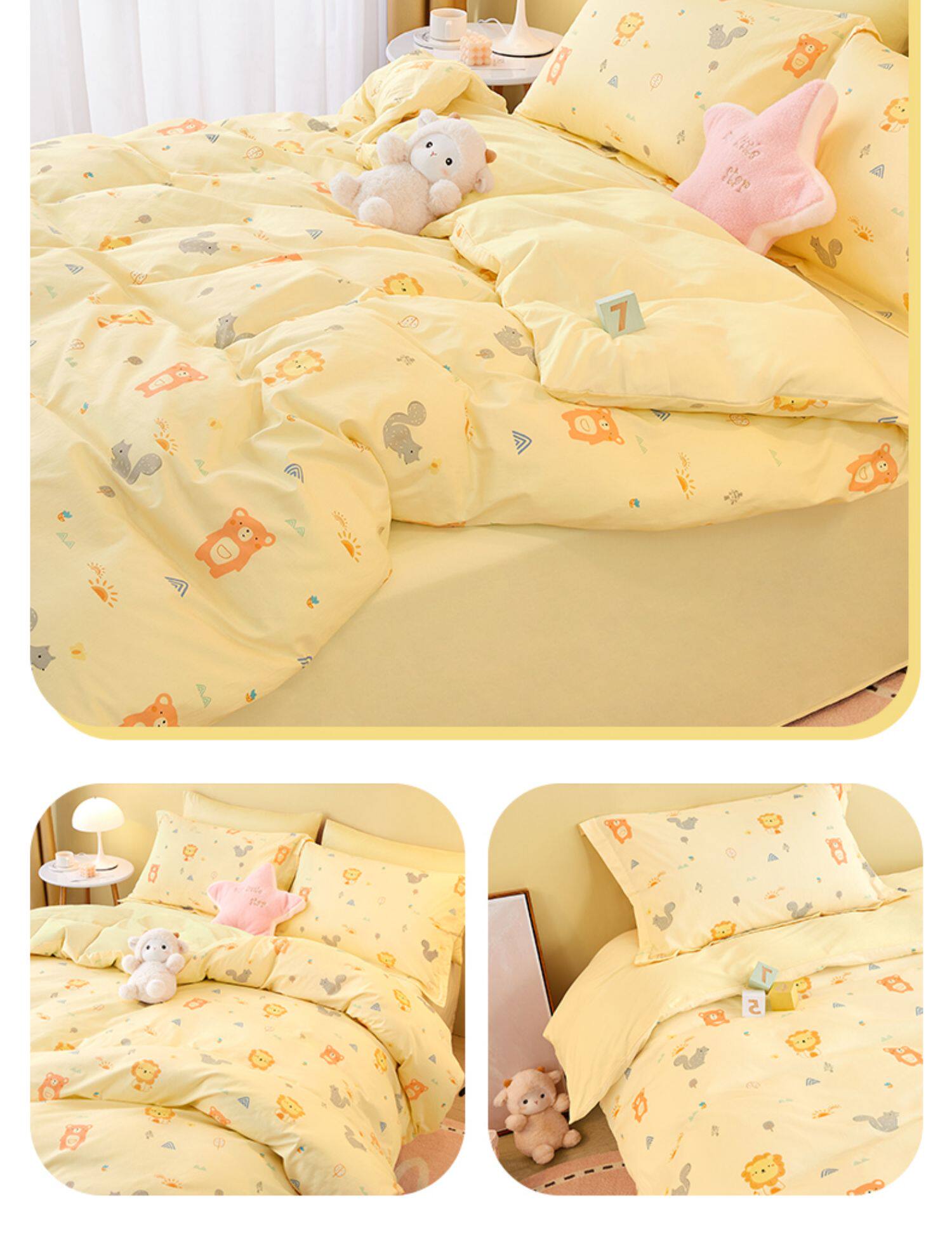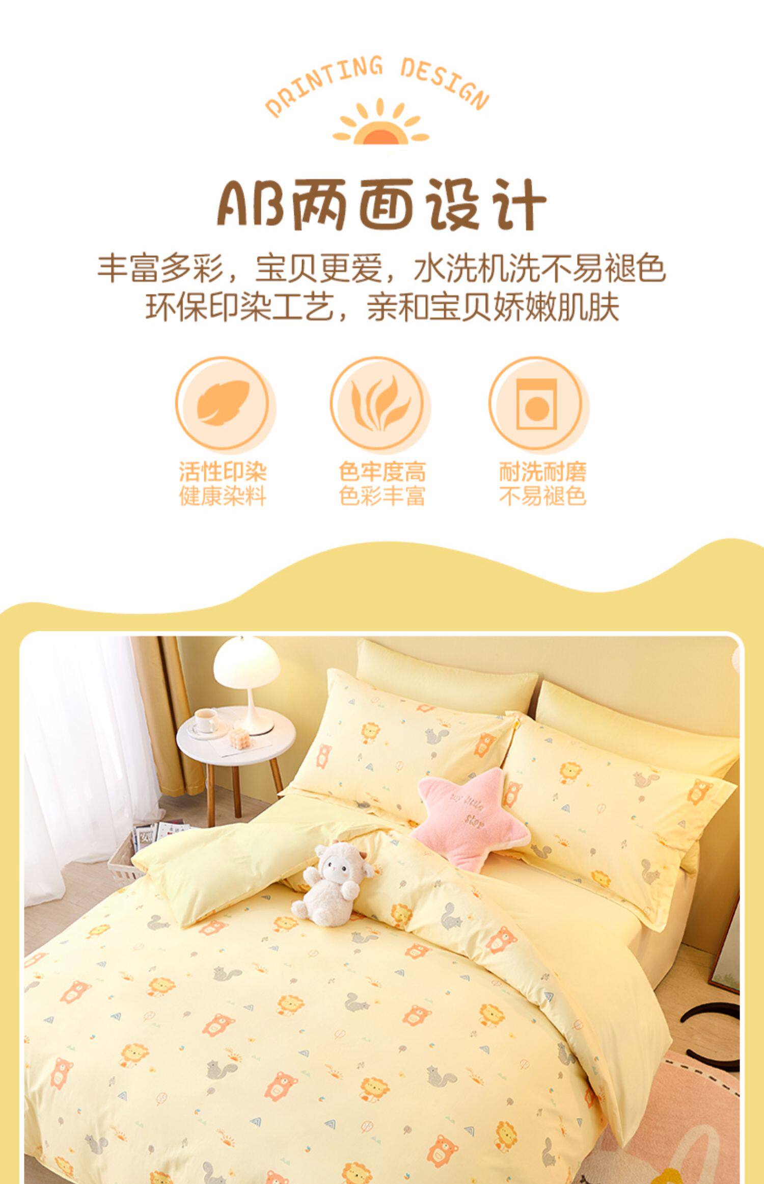 Детский хлопковый демисезонный комплект подходит для мужчин и женщин, мультяшная милая простыня, пододеяльник для детского сада, 3 предмета, постельные принадлежности