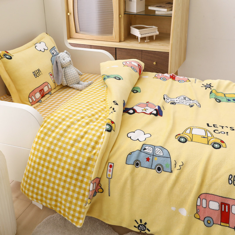 Одеяло для детского сада, детский комплект, двусторонний коралловый зимний пододеяльник, увеличенная толщина, 3 предмета, постельные принадлежности