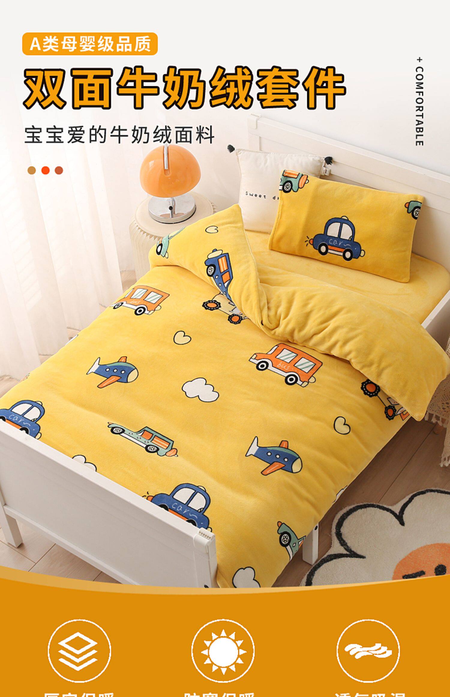 Одеяло для детского сада, детский двусторонний коралловый демисезонный комплект, 3 предмета, увеличенная толщина, постельные принадлежности