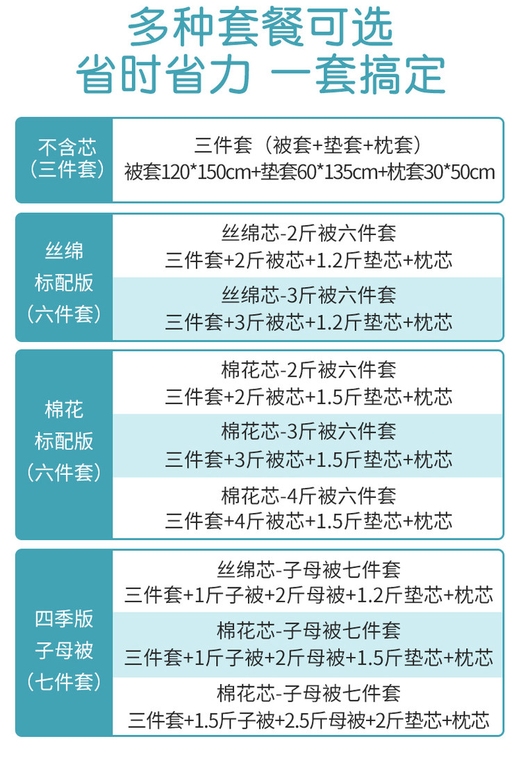 - Шелковое хлопковое ядро-3 фунтов детей-набор из семи частей