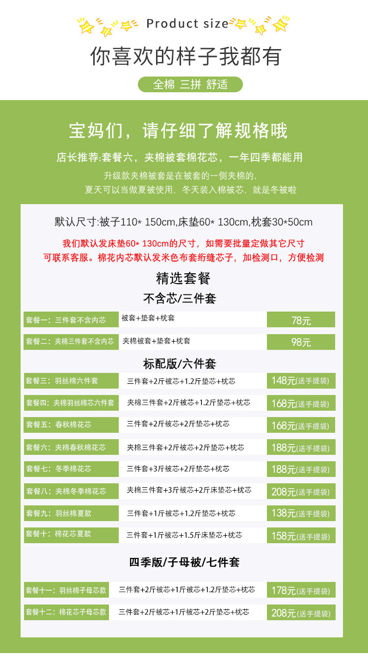 | Размер: | Пакет 1 [Case+Case Case+набор подушек], Пакет 2 [Три -кусочек хлопка без ядер], Пакет три [Six -Piece Six Plauffy Set], Пакет четыре [шесть -кусочек хлопчатобумажного хлопчатобумажного ядра], Пакет 5 [шесть -кусочек хлопчатобумажных ядер весной и осенью], Пакет шесть [хлопковая хлопковая пружина и осенняя хлопковое ядро шестилетнее набор]], Пакет Семь [Зимнее хлопковое ядро шесть комплектов], Стеганый зимний хлопковый комплект, Пакет девять [Yu Si Cotton Summer -Six -Piece Set], Пакет десять [шесть -цепные набор хлопковых летних моделей], Пакет Одиннадцать [Семь -набор из хлопкового ядра Yusi Cotton Mother], Пакет 12 [Семь -кусочек хлопчатобумажного набора Mother Core] |