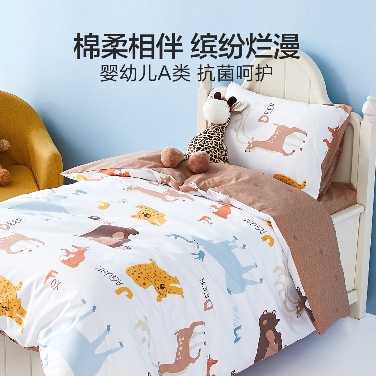 Хлопковый детский мультяшный комплект для раннего возраста, 3 предмета, постельные принадлежности
