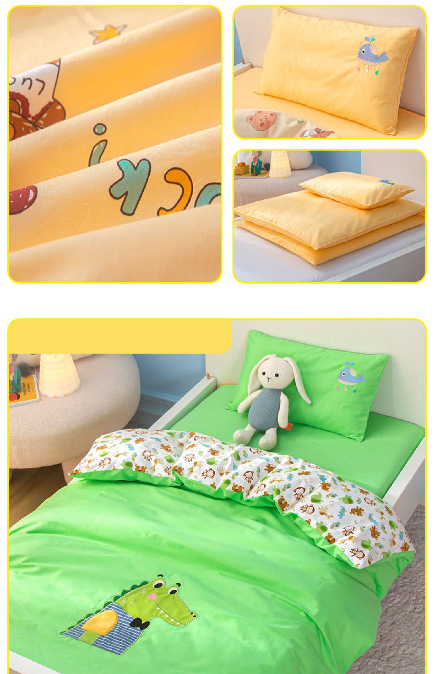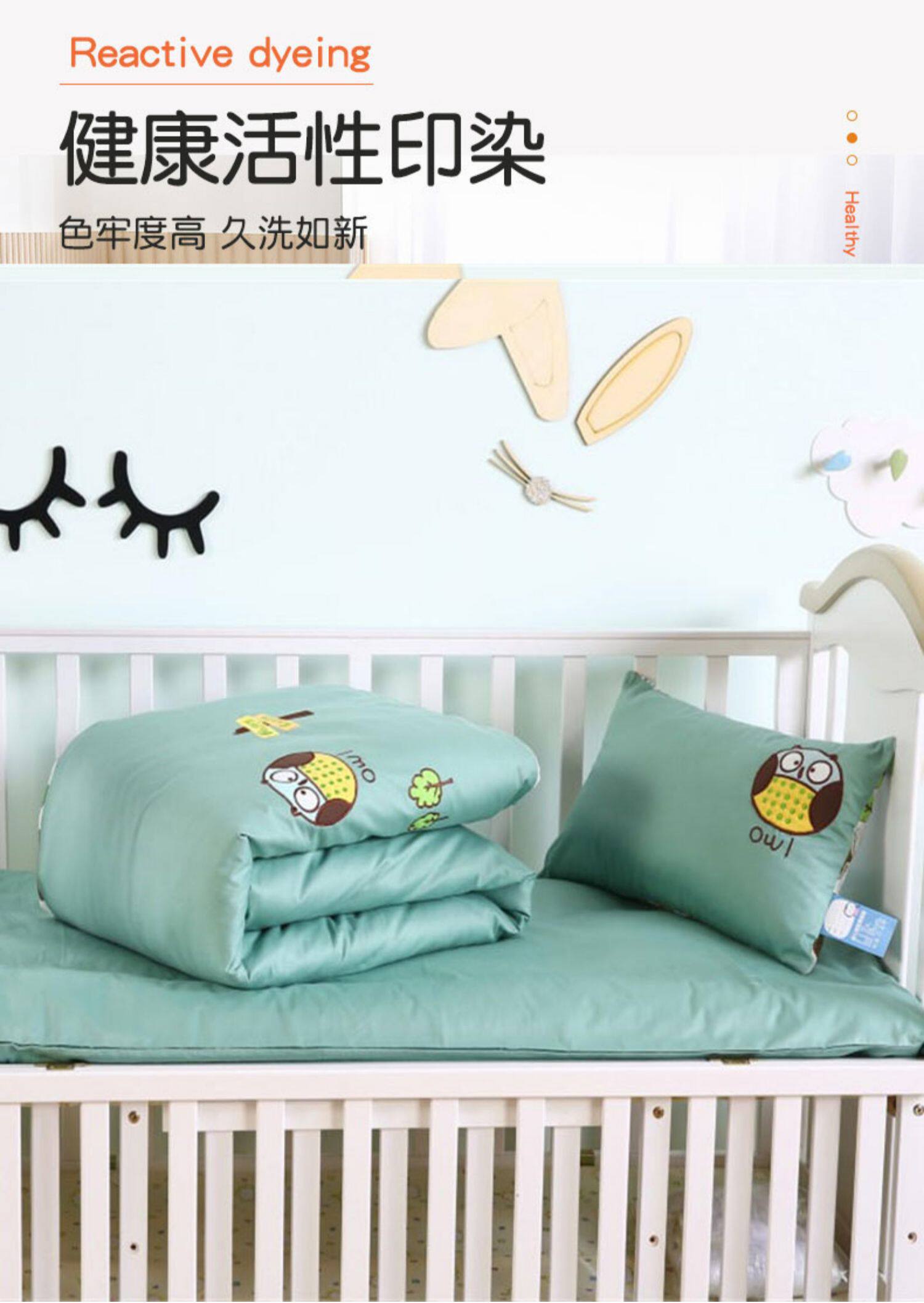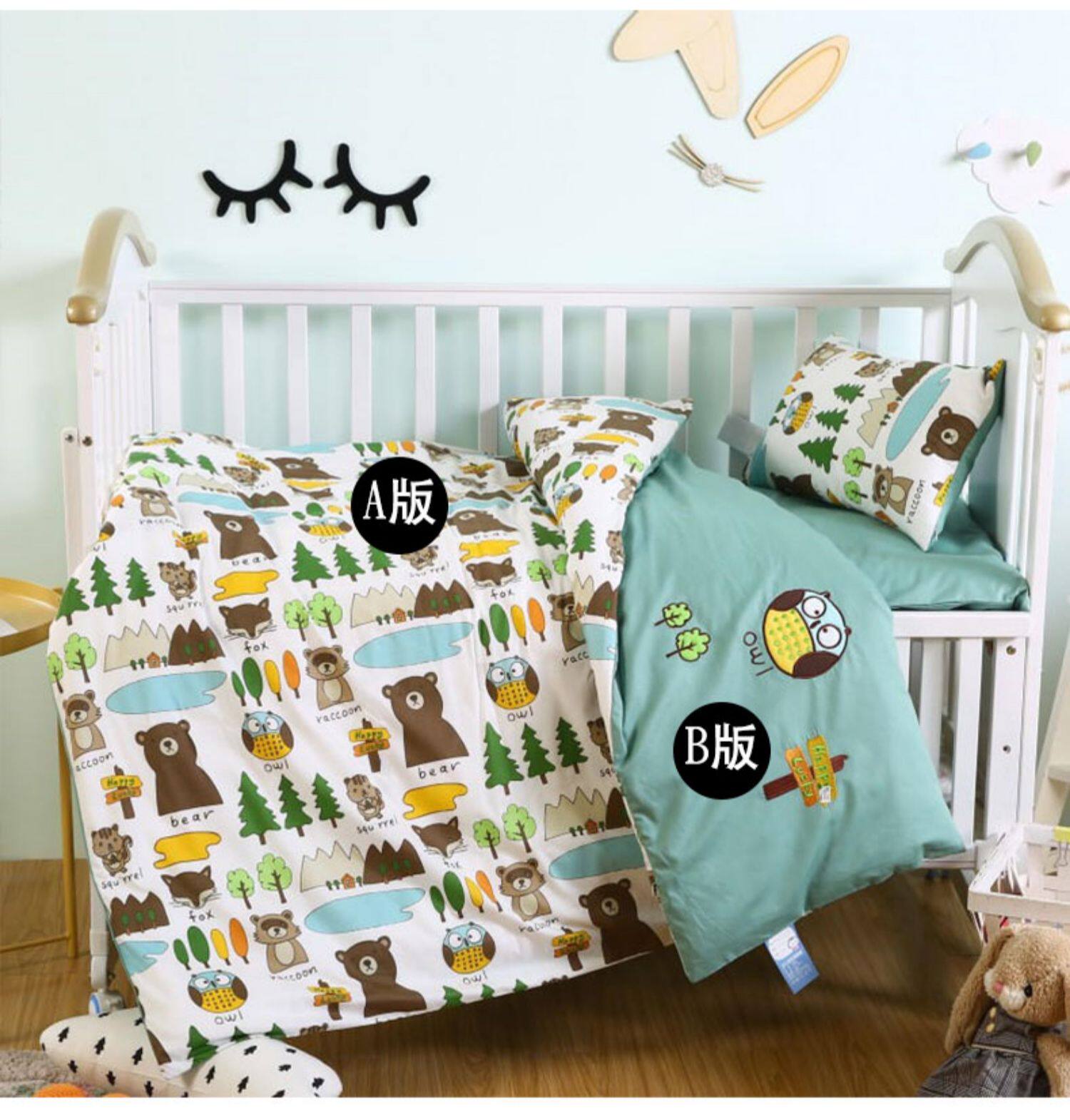 Одеяло для детского сада, хлопковый комплект для сна, детское зеленое покрывало, 3 предмета, постельные принадлежности