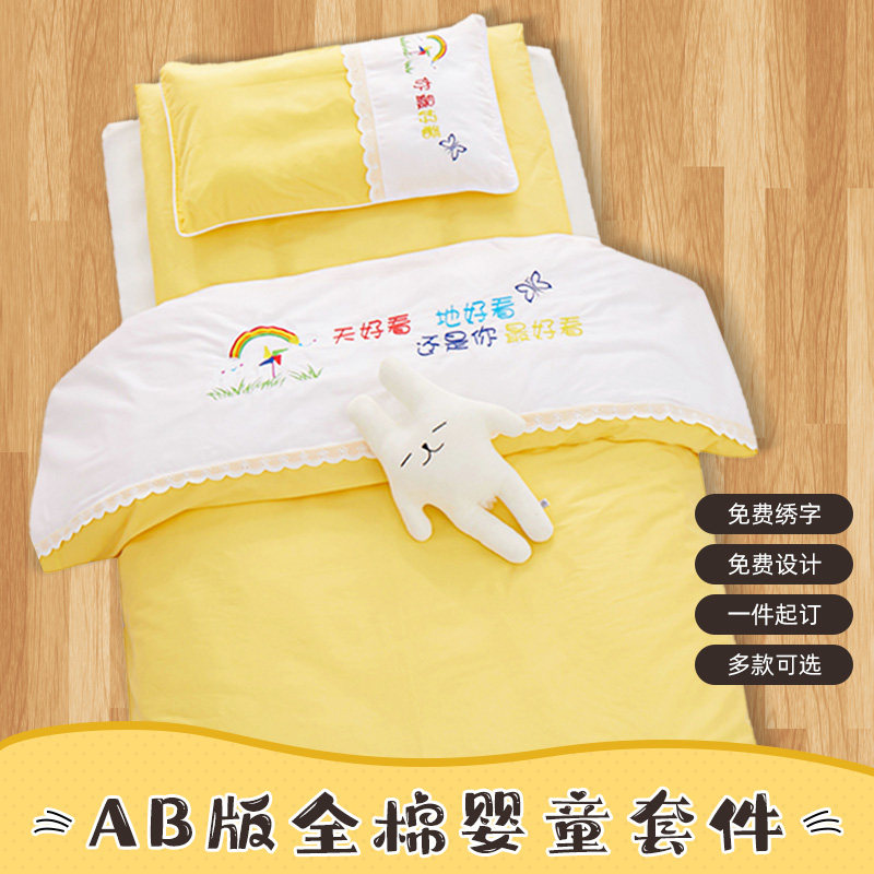 Одеяло для детского сада, комплект, детская хлопковая кровать для сна, индивидуальное покрывало, 3 предмета, делается под заказ, с печатью вашего логотипа, постельные принадлежности