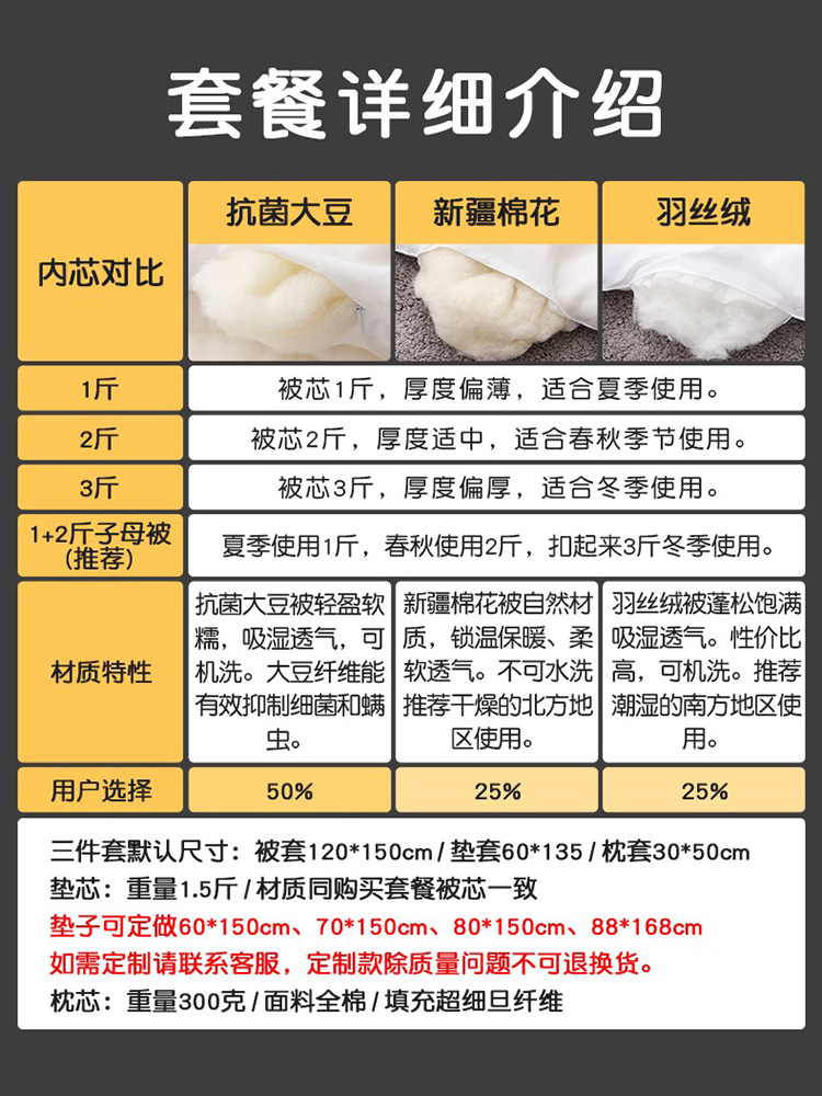 - Шесть -цех, набор пружины и осеннего шелкового хлопкового ядра [2 Catties of Core+1,5 Catties Pad Core+Core Core+Three -Piece Set]