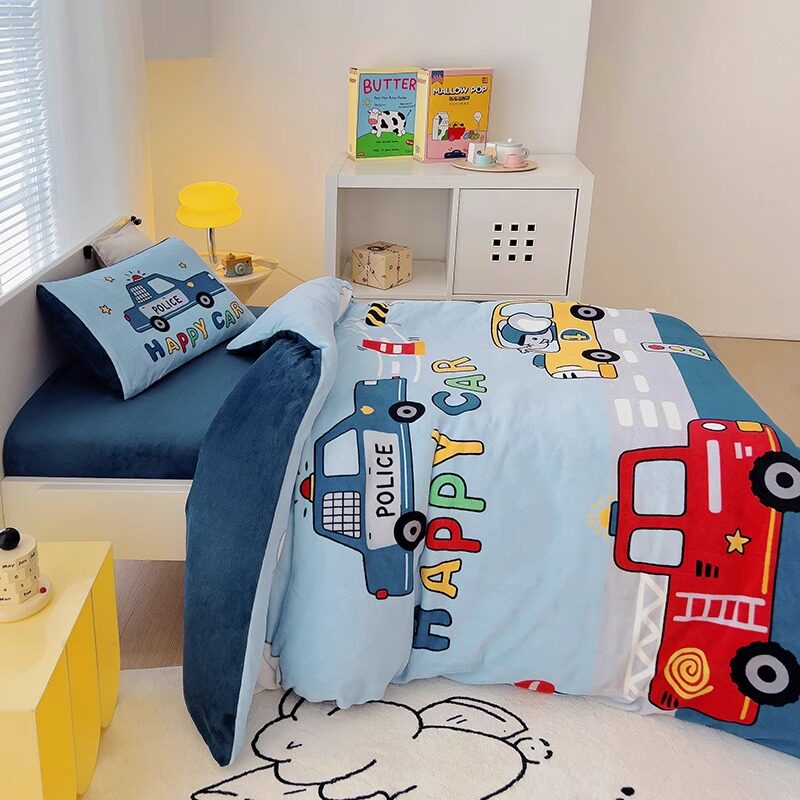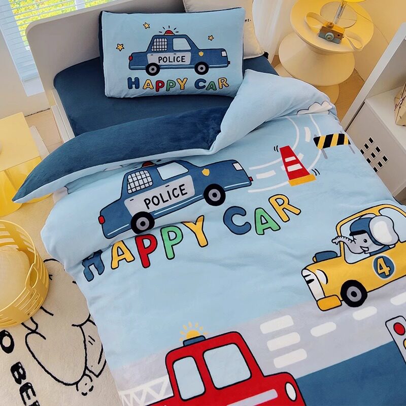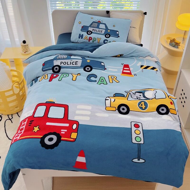 Зимнее коралловое одеяло для детского сада, мультяшный детский двусторонний комплект, 3 предмета, постельные принадлежности