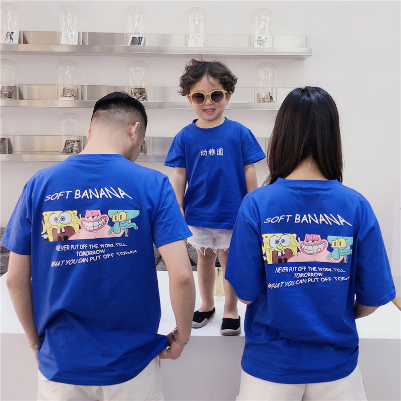 Синяя летняя одежда, летняя футболка с коротким рукавом, широкая цветовая палитра, семейный стиль, коллекция 2021