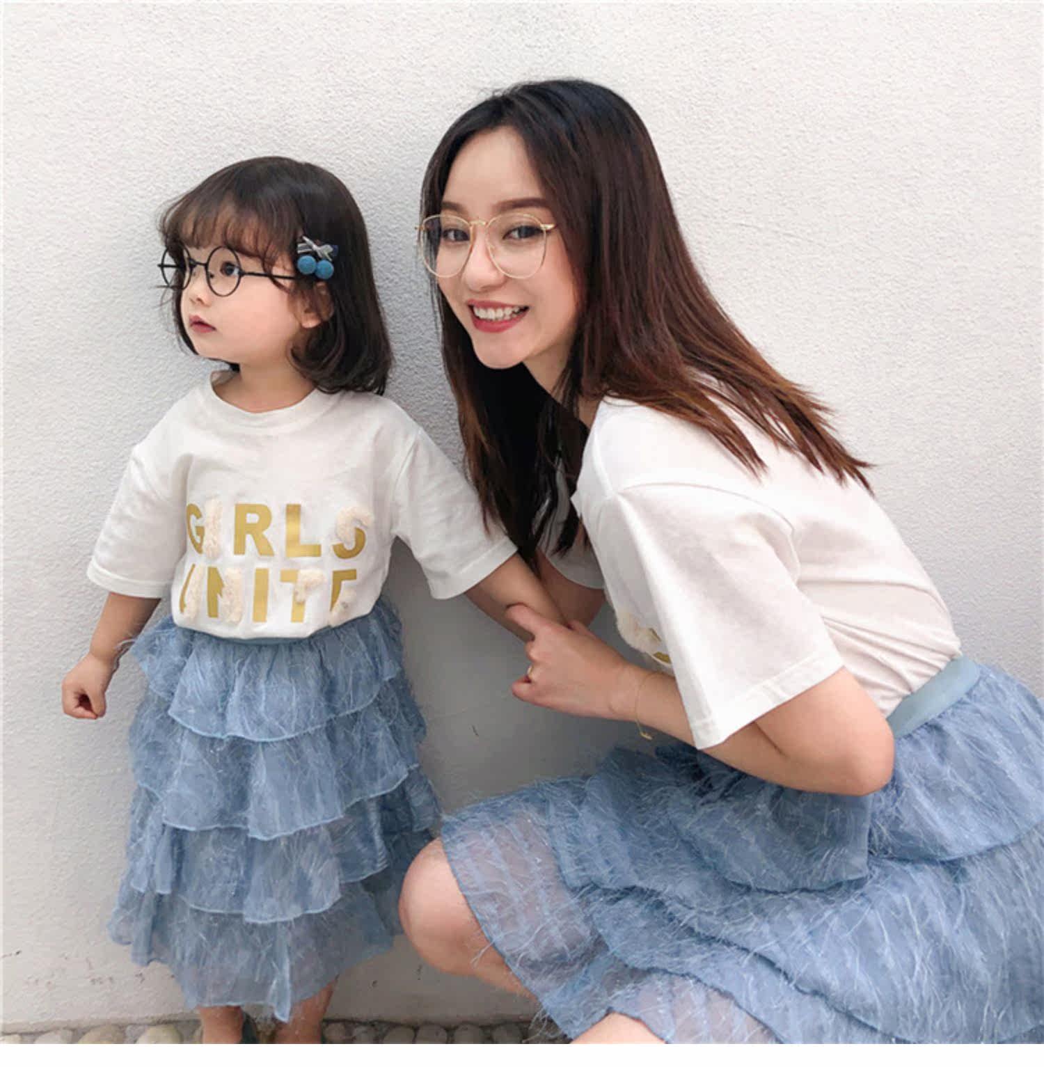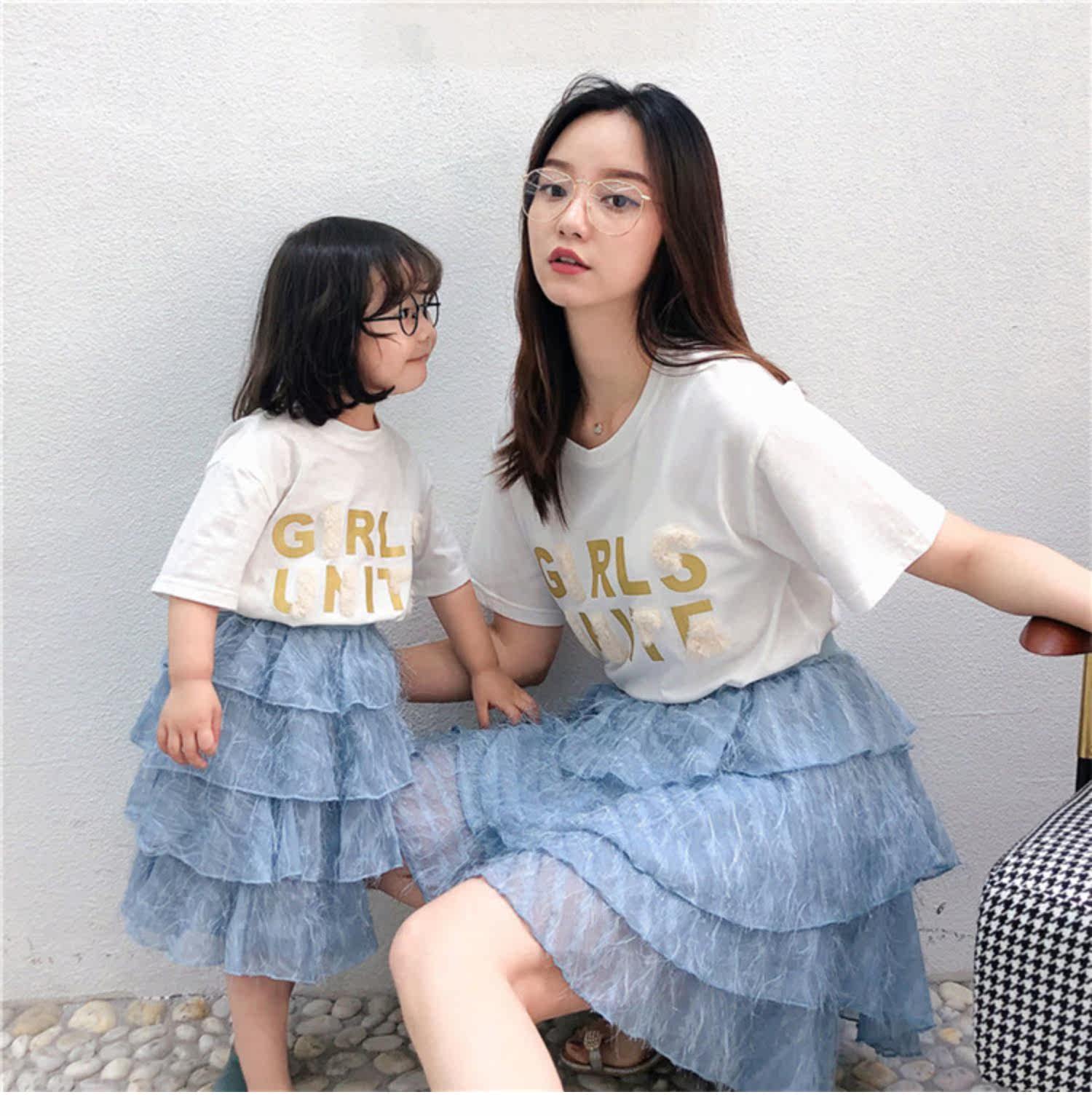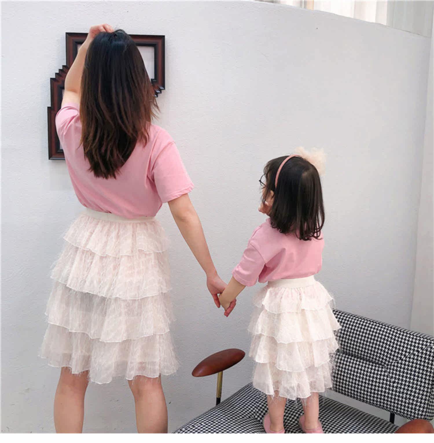 Розовые румяна, комплект, платье, юбка, летняя одежда, футболка с коротким рукавом, семейный стиль, популярно в интернете, в западном стиле, новая коллекция